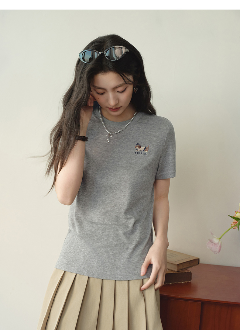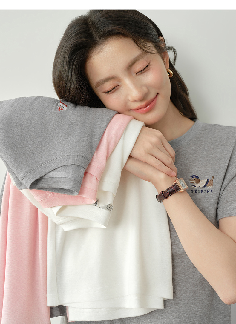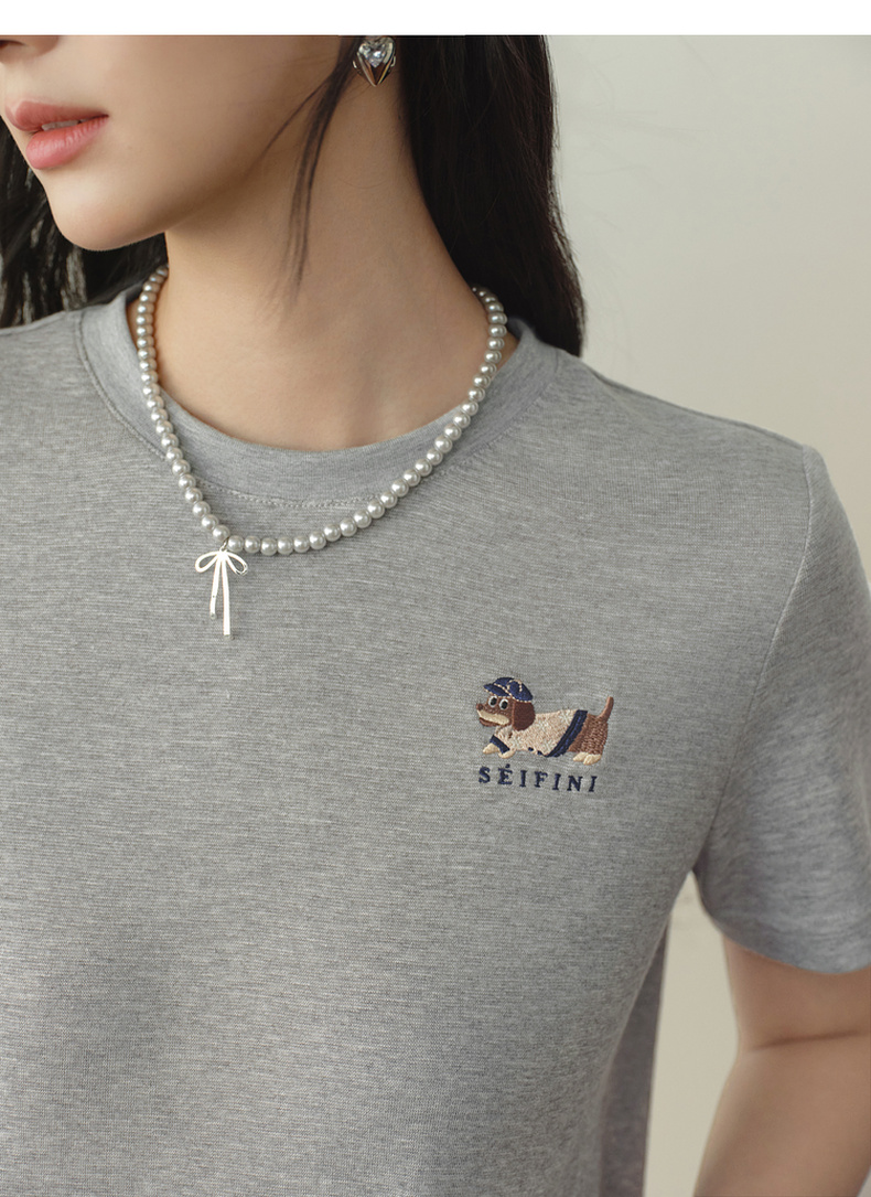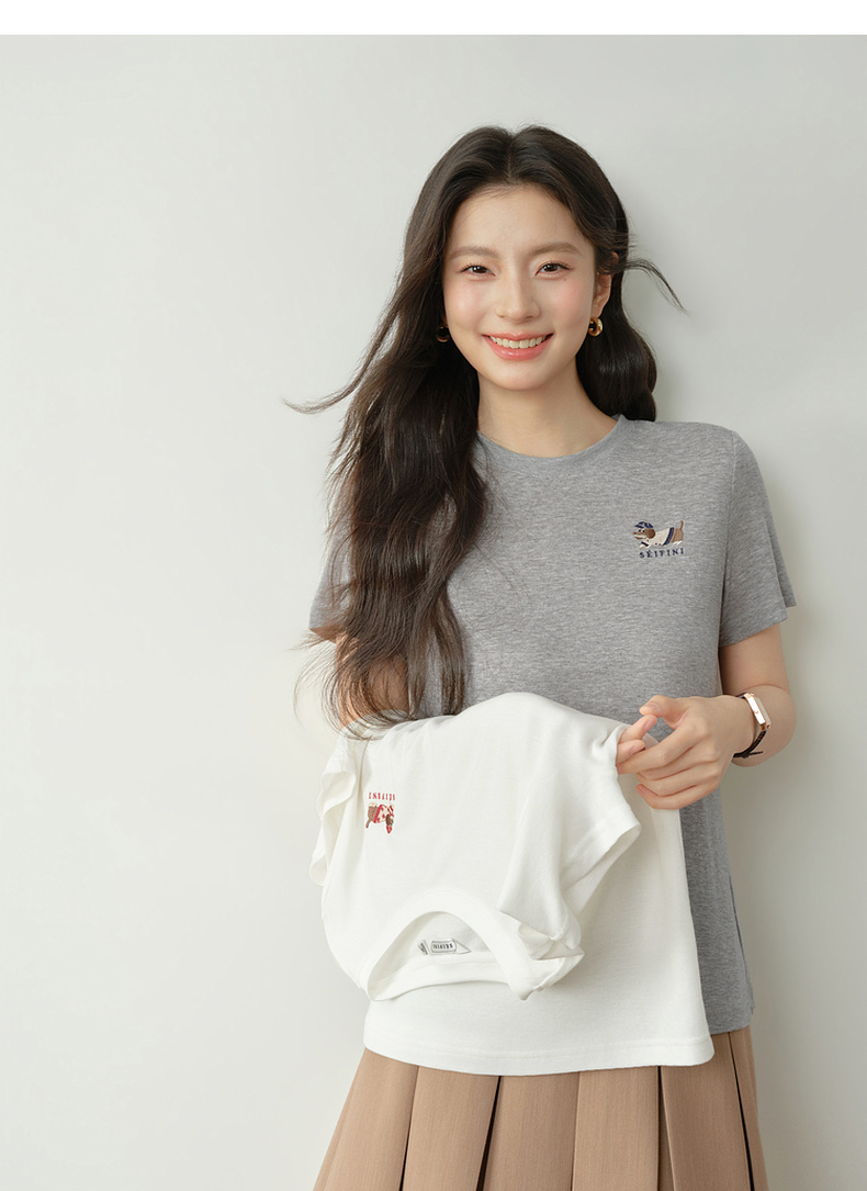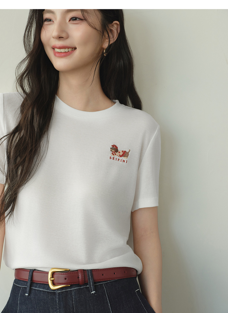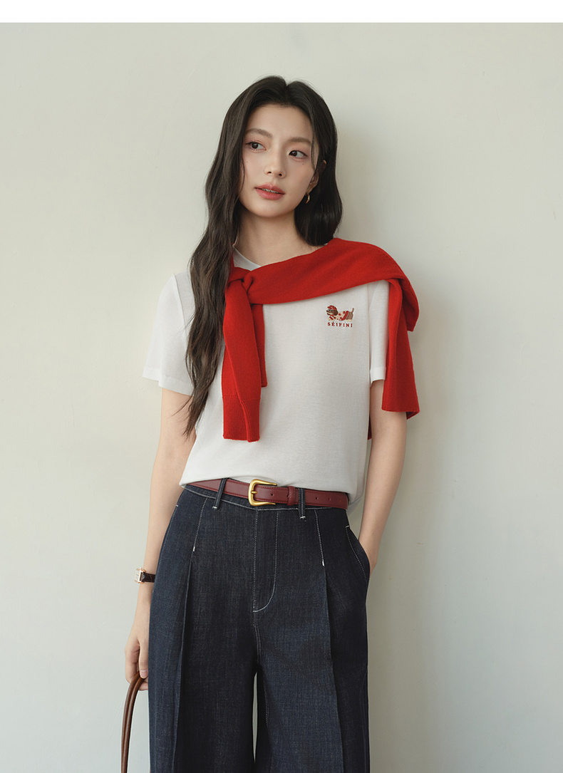【严选】【奶皮T】诗凡黎天丝羊毛萌宠刺绣T恤2026春新款亲肤柔软内搭短袖7H1400251