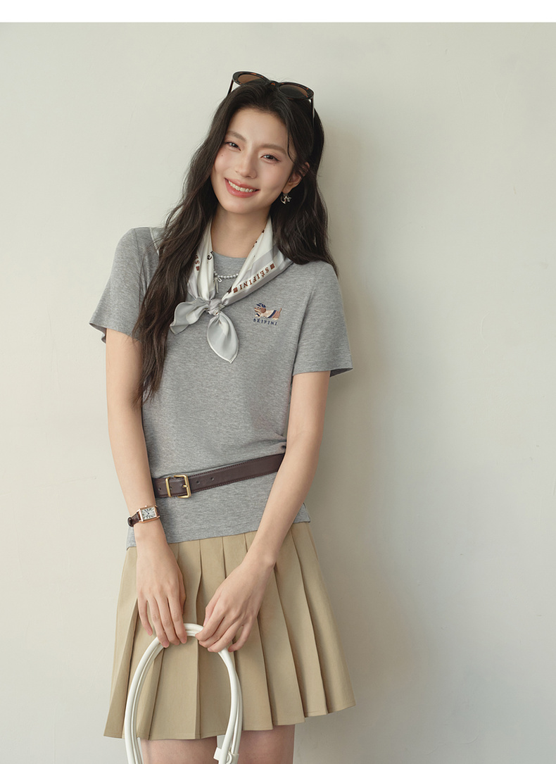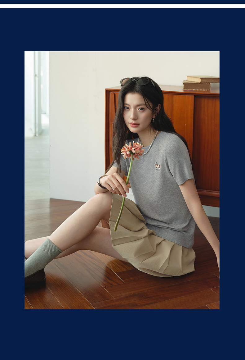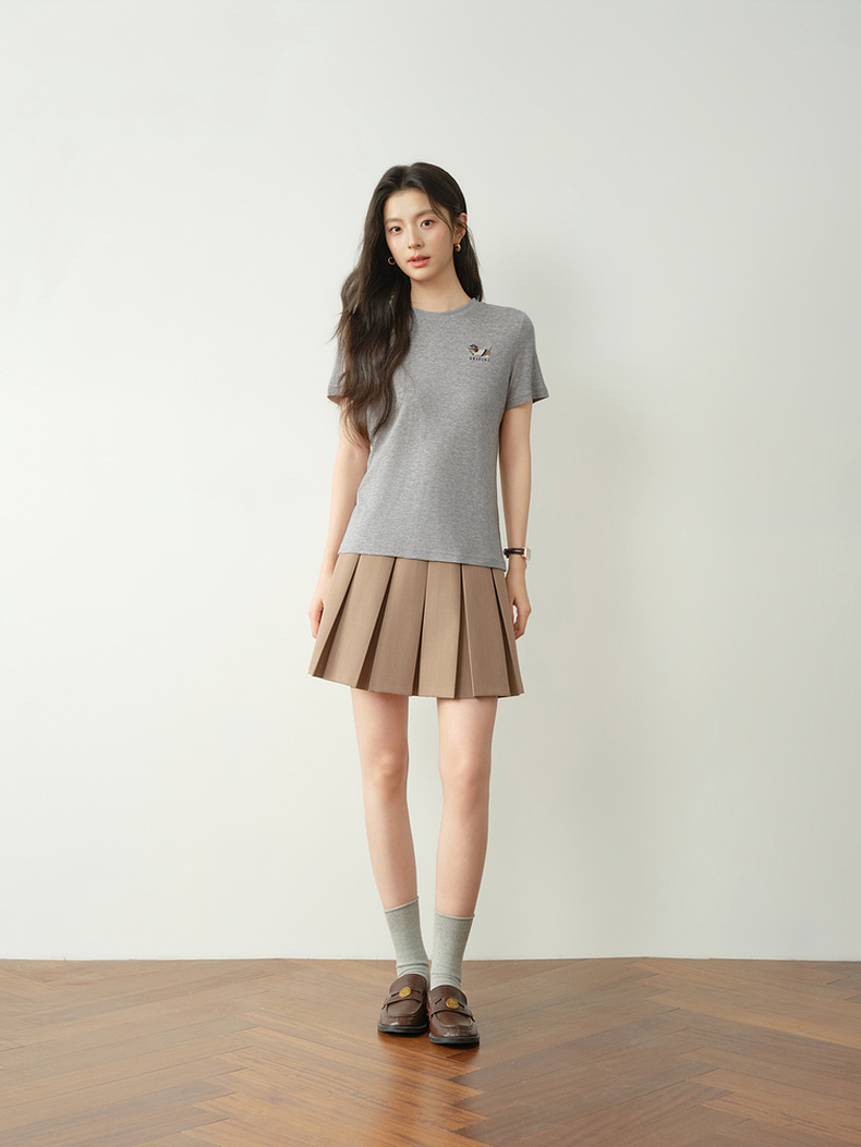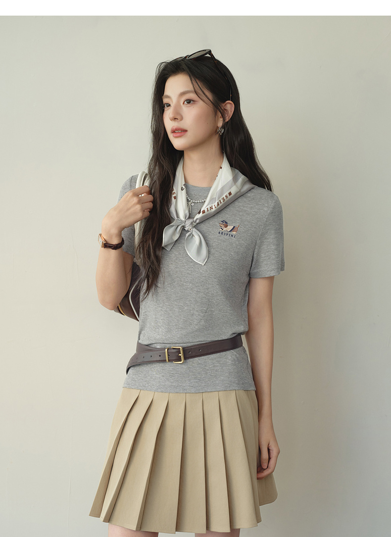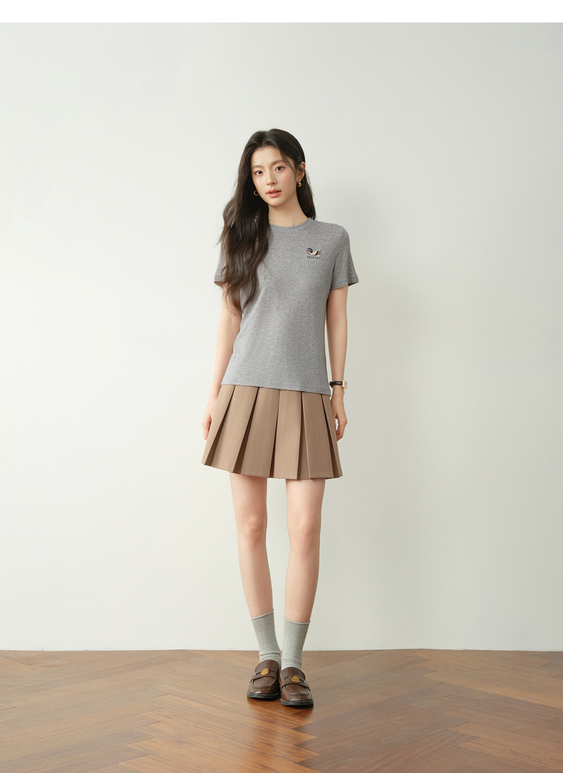 【严选】【奶皮T】诗凡黎天丝羊毛萌宠刺绣T恤2026春新款亲肤柔软内搭短袖7H1400251