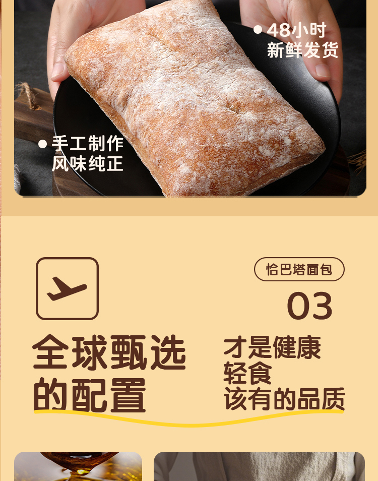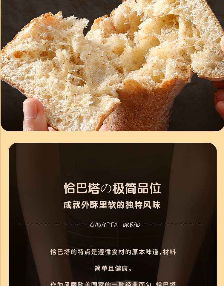 【自律人专属】经典意式面包[恰巴塔面包]真全麦粉添加 麦香纯正 外酥里软 15天短期保质 拒绝复杂添加剂