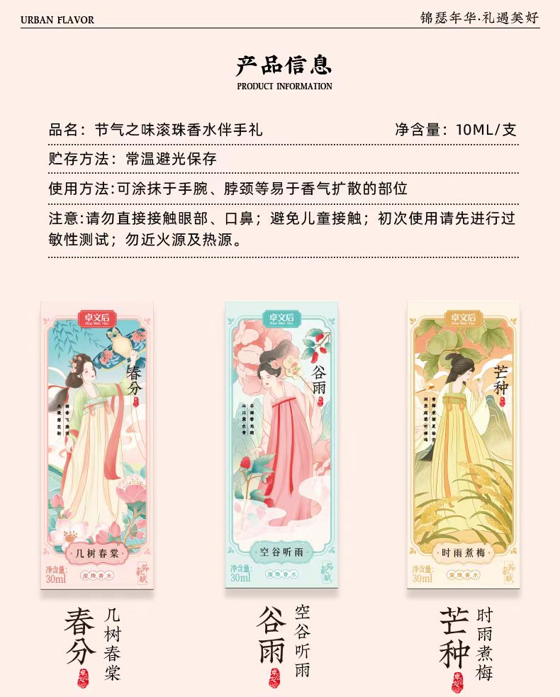 热卖中!!【情人节礼物好物】非物质文化遗产卓文后 节气赋滚珠香水 持久淡香 6款香型 多种选择