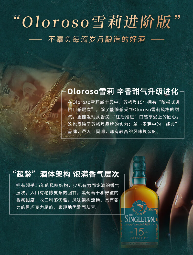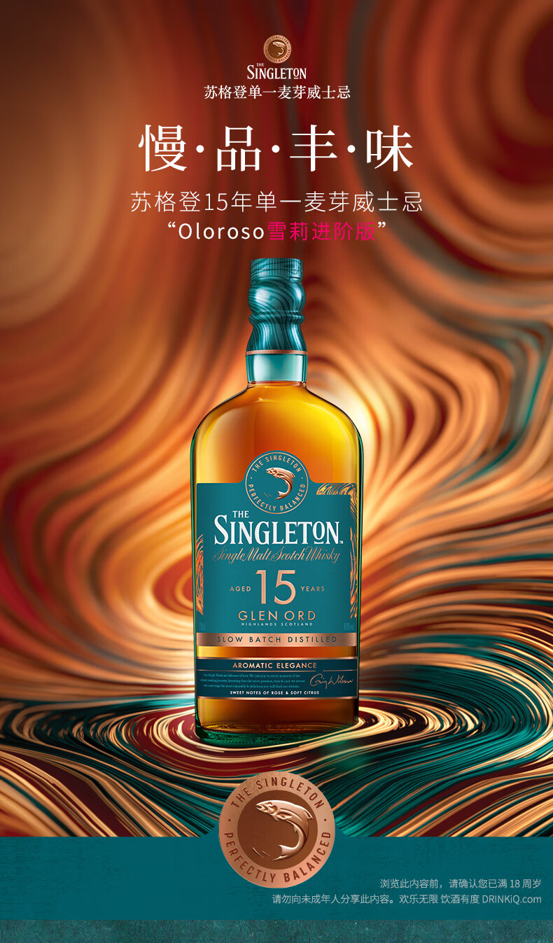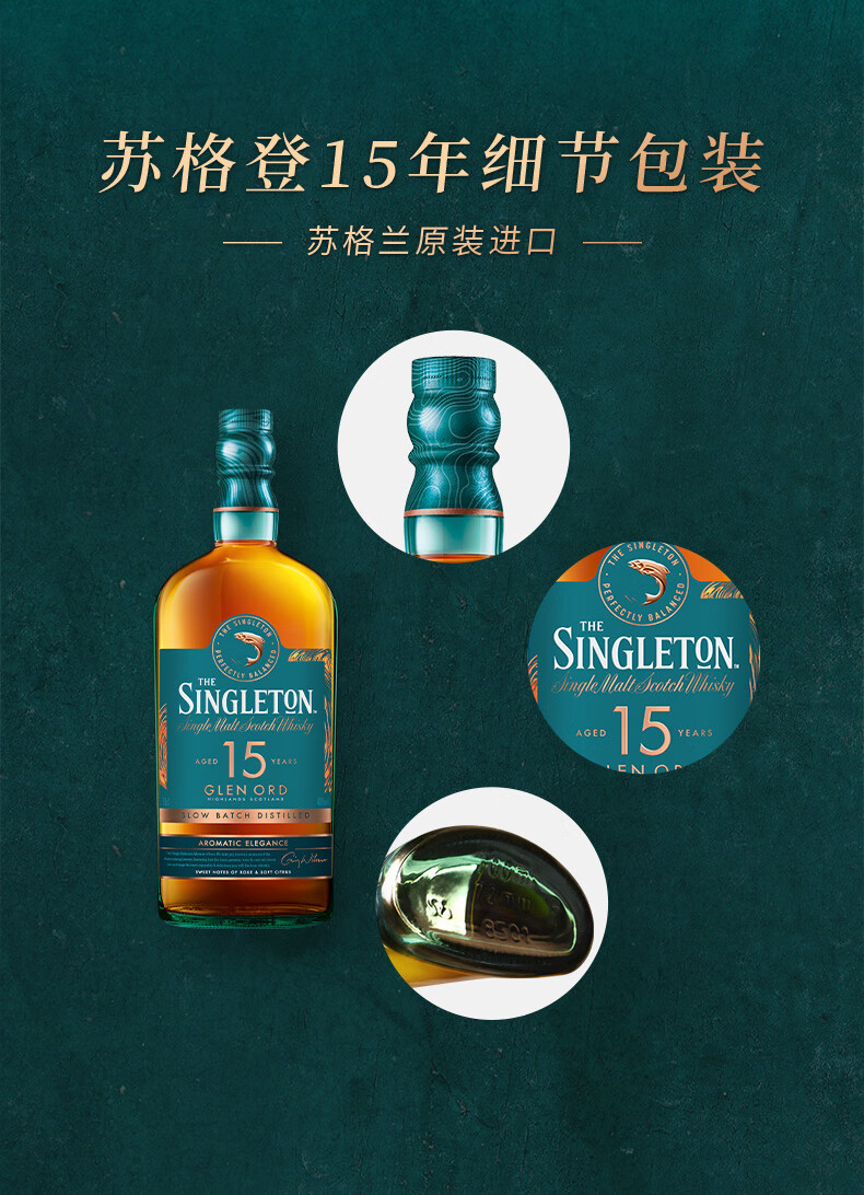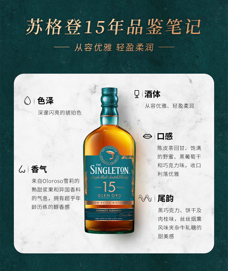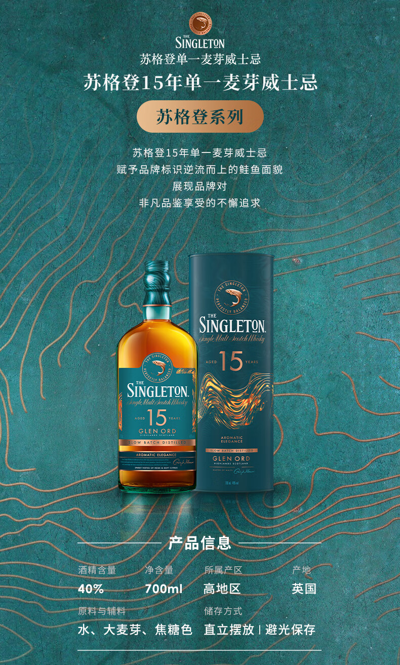 【有税版】苏格登15年苏格兰单一麦芽威士忌 700ml高地