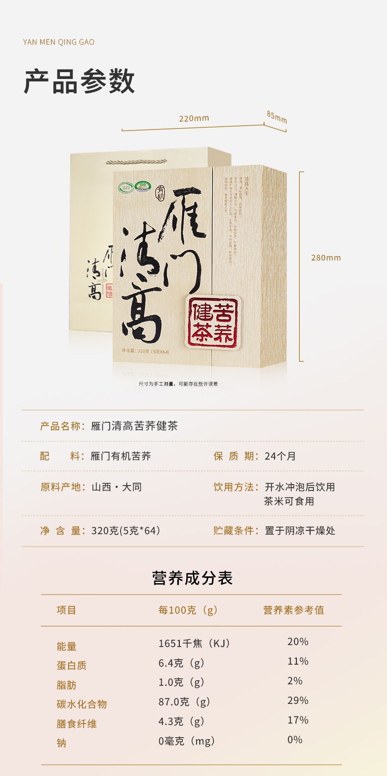 雁门清高有机黑苦荞茶320g麦香型山西特产苦荞大麦茶送礼礼盒