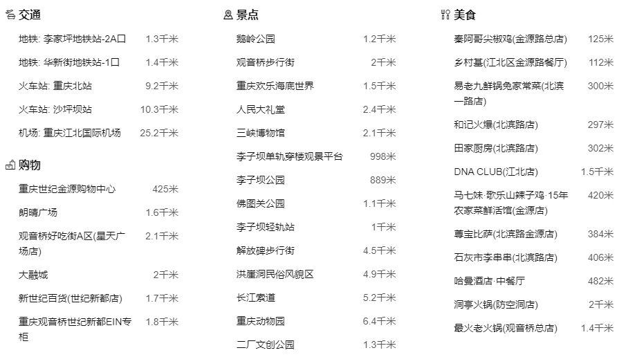 重庆:以独特的地理位置与丰富的历史文化著称。从两江交汇的自然景观到快速发展的现代都市风貌,再到热情好客的重庆人民,都展现出这座城市的独特魅力。全季酒店(重庆观音桥金源时代购物中心店)秉承“东方·适度·人文”的品牌精神结合“开放包容·勇于创新·坚韧不拔”的重庆精神,为宾客提供更高品质的出行体验。酒店位于江北区观音桥金源路62号,毗邻金源时代购物中心及金源路公交站。周边有观音桥都市旅游区、李子坝轻轨穿楼、人民大礼堂等,酒店配备自助健身房、自助洗衣房、会议室、免费停车等设施齐全交通便利。酒店设计简约而不失温馨,注重细节与品质,旨在为宾客提供安静舒适的入住环境,并积极融入重庆人文精神让宾客在路途中感受到家的温暖。