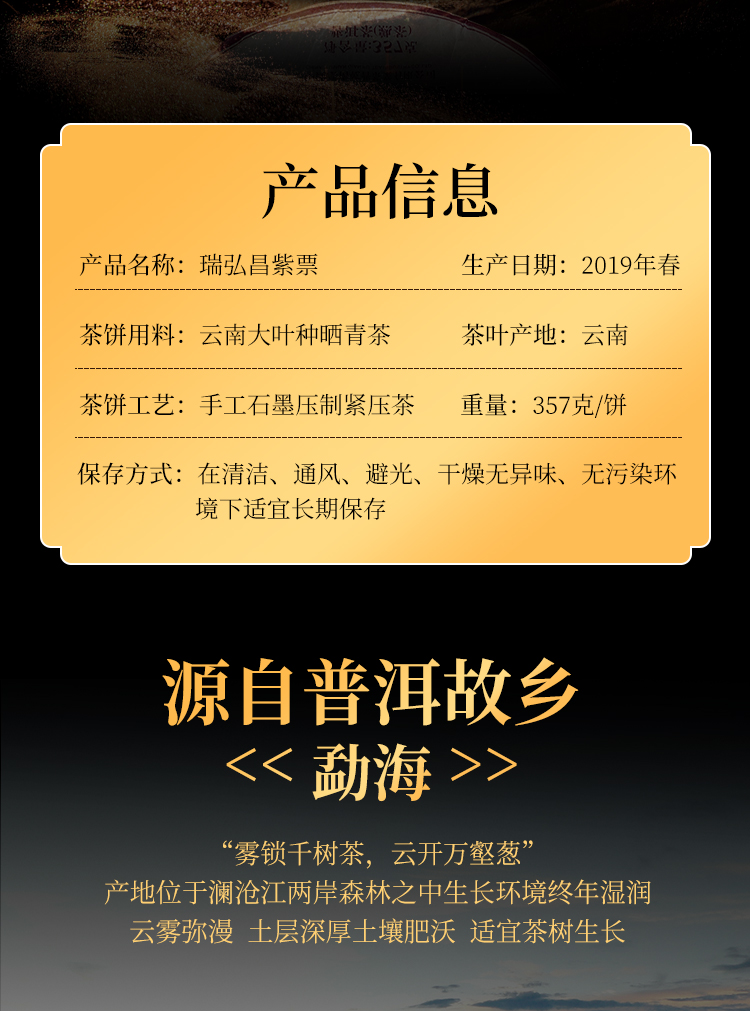尚礼村2019 瑞弘昌【紫票】熟普洱茶 357g