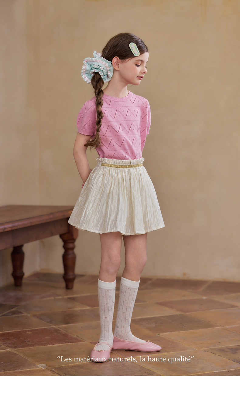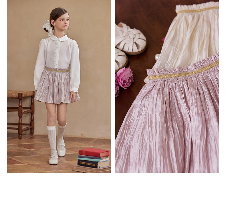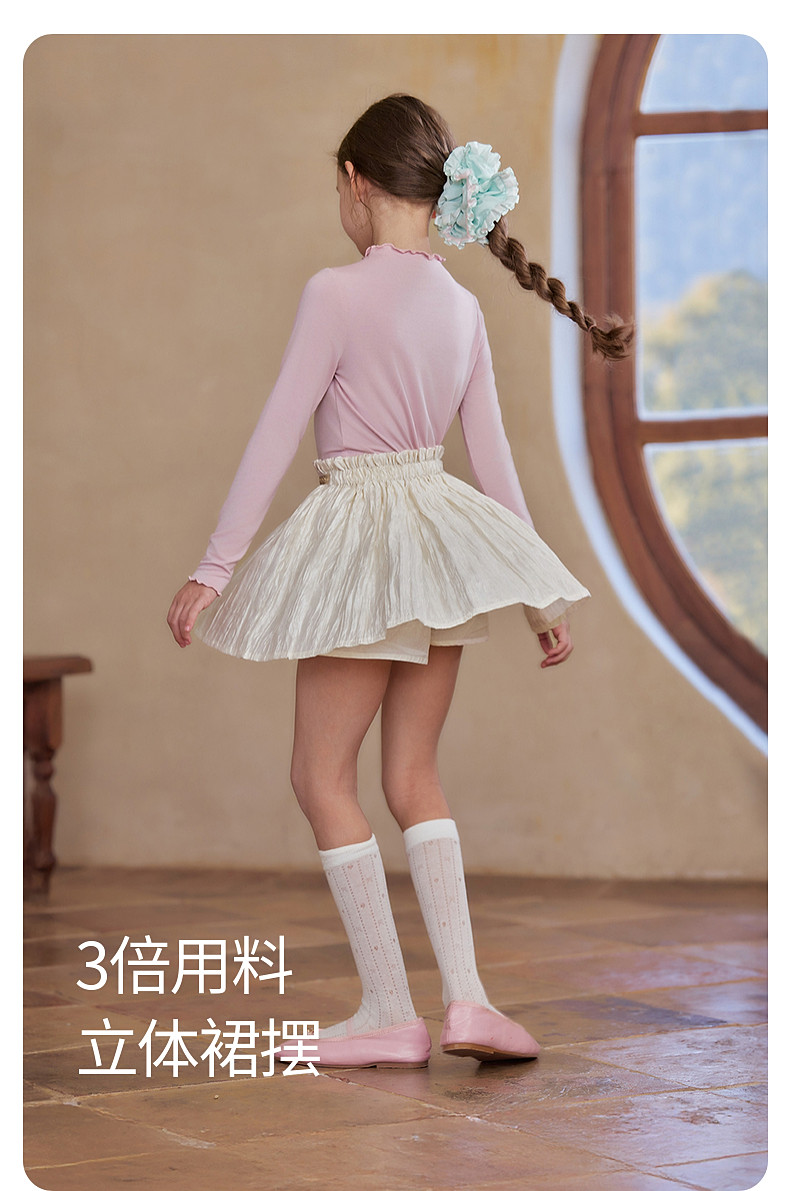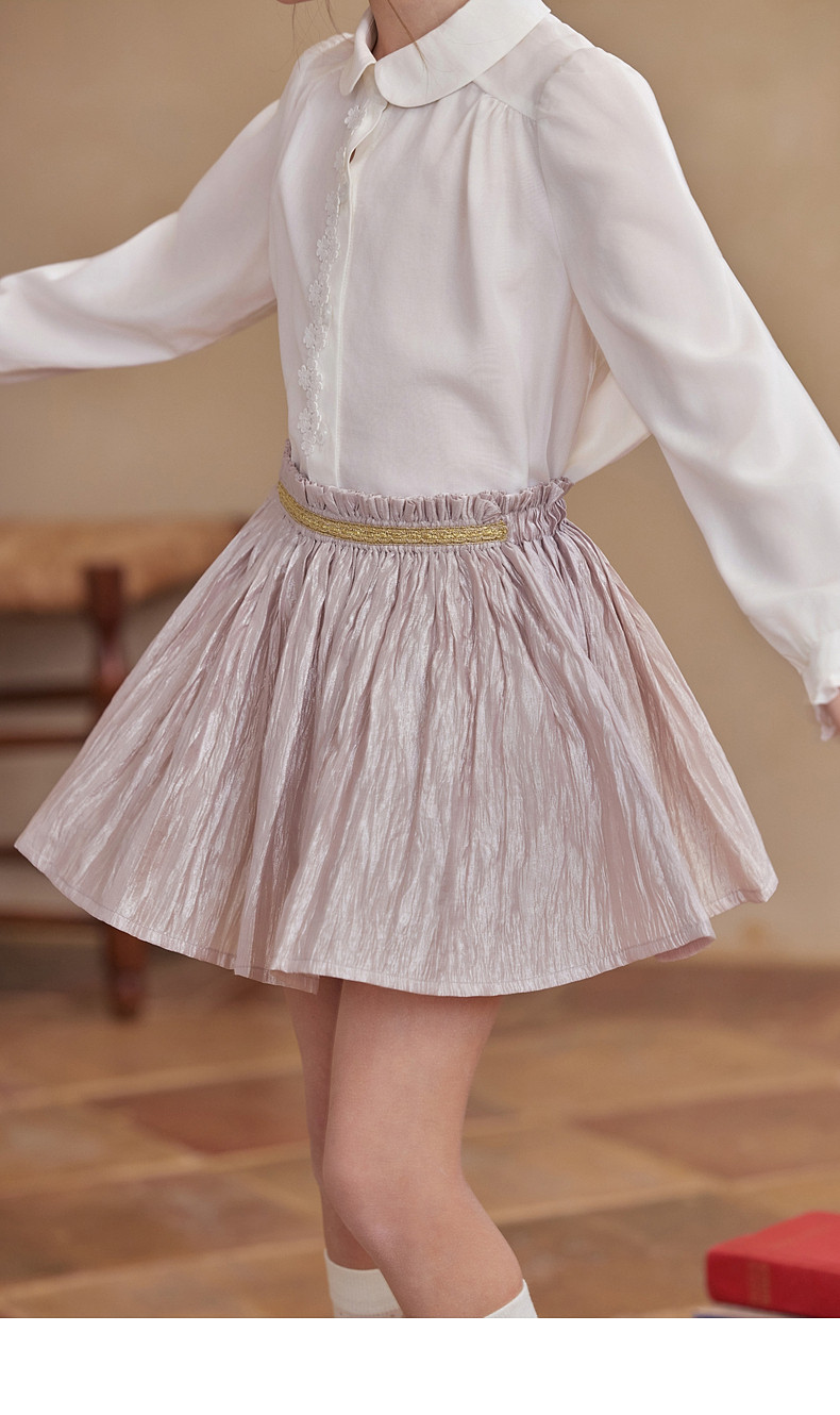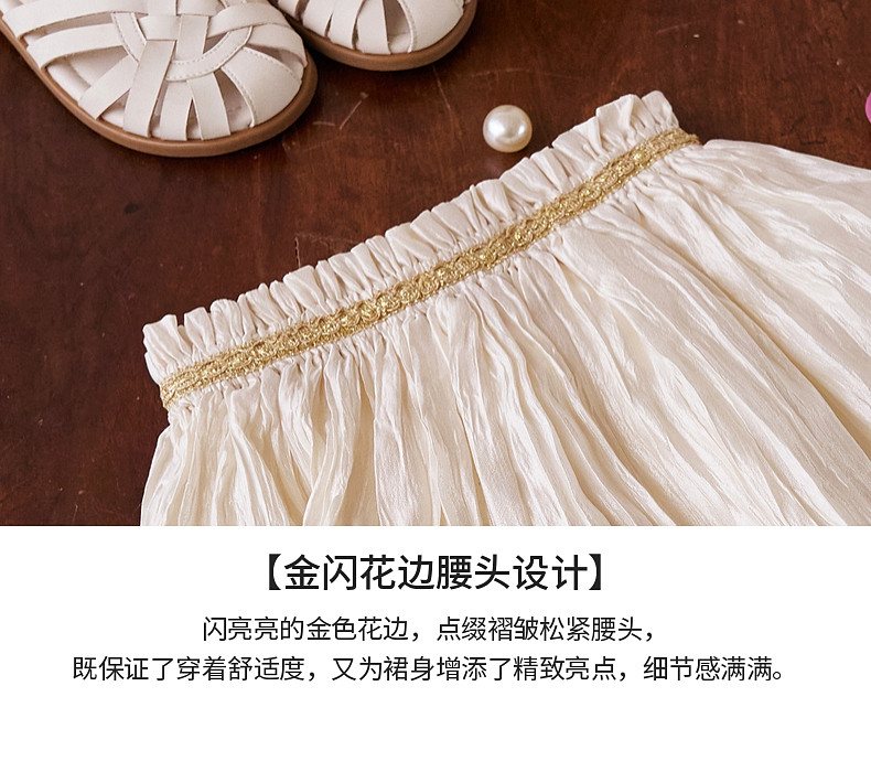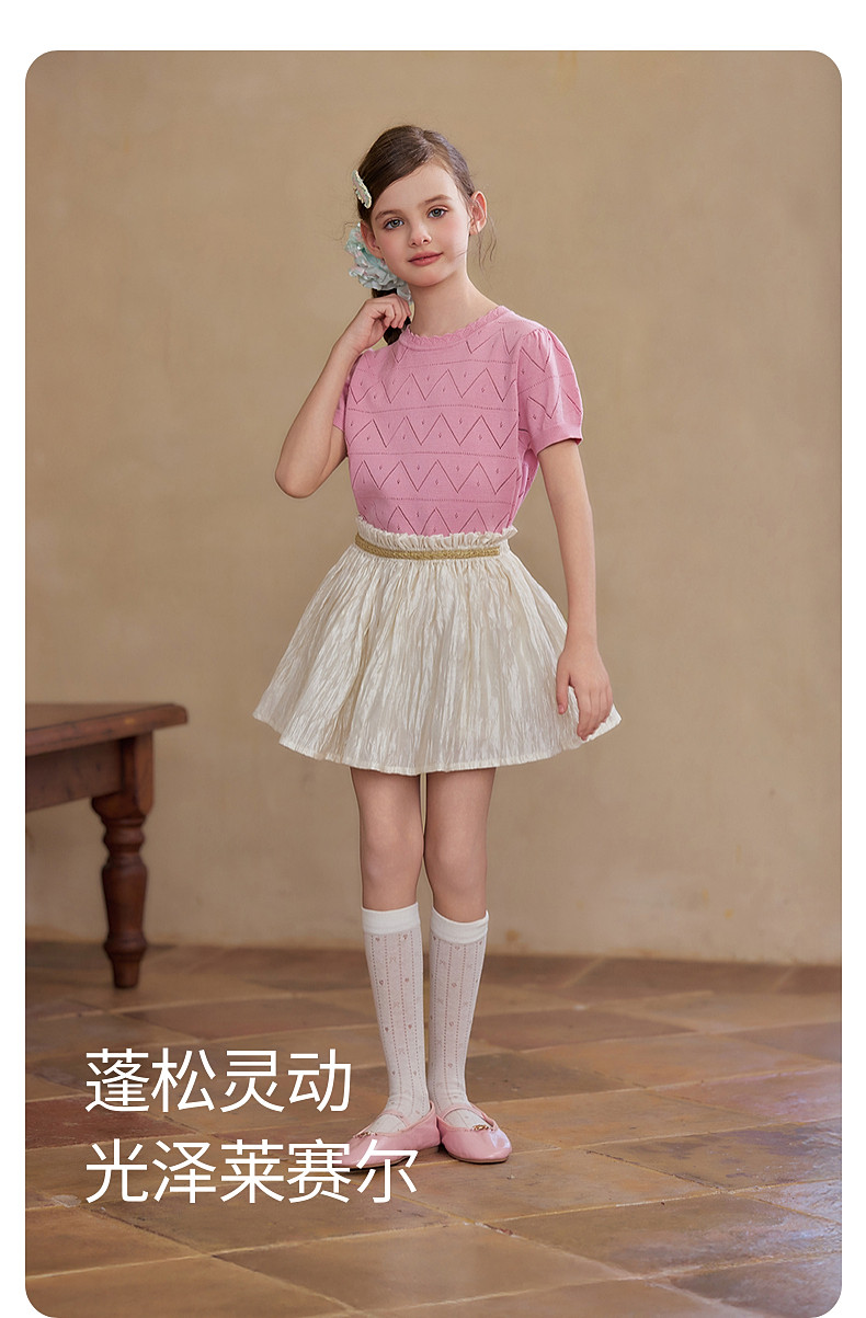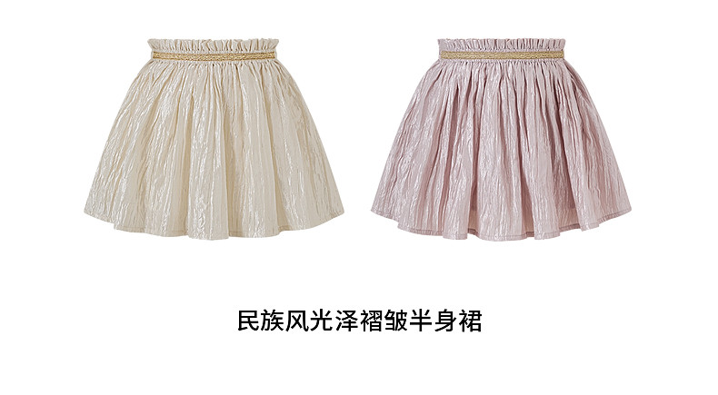 【云优选】Little Naive女童莱赛尔半身裙春季新款褶皱半裙儿童轻薄百搭短裙