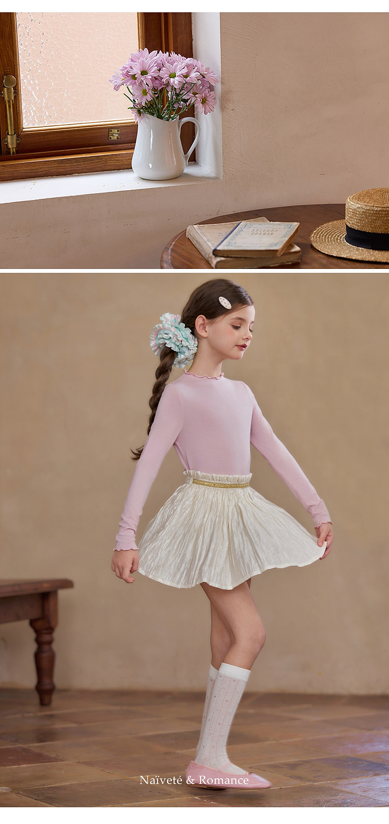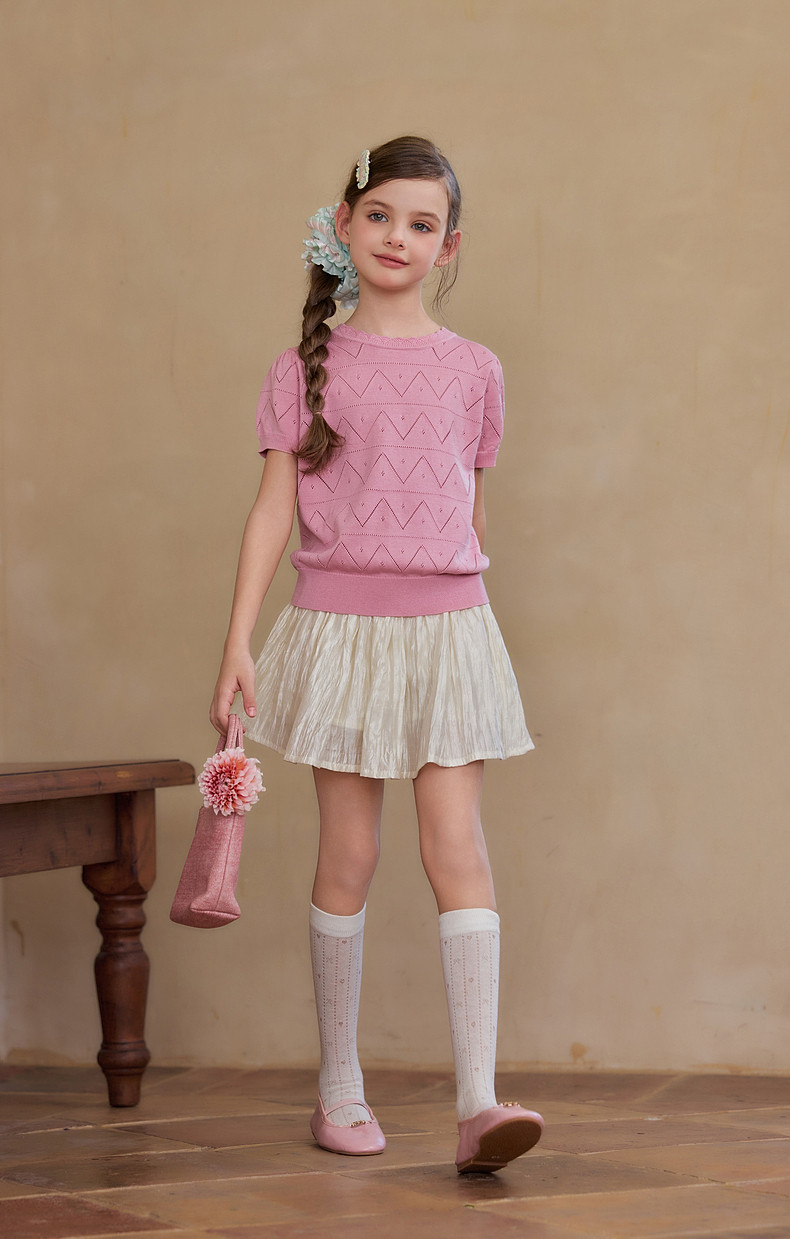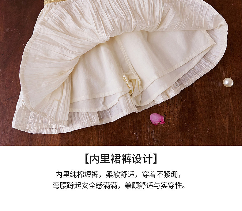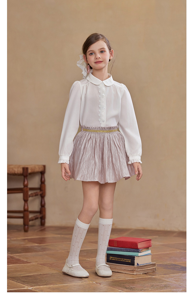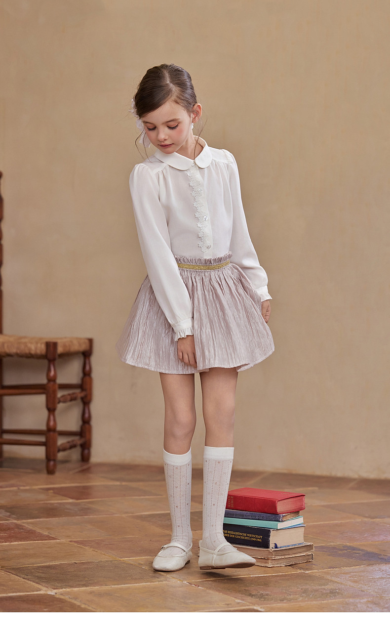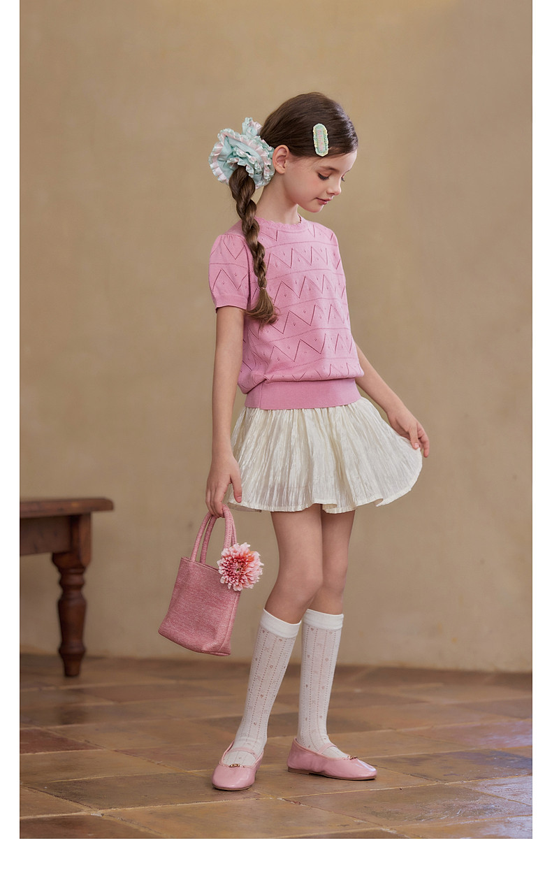 【云优选】Little Naive女童莱赛尔半身裙春季新款褶皱半裙儿童轻薄百搭短裙