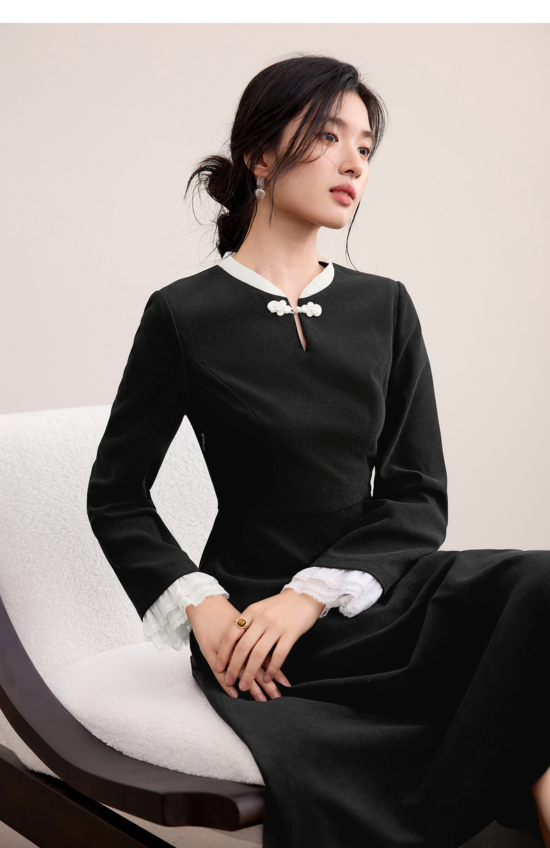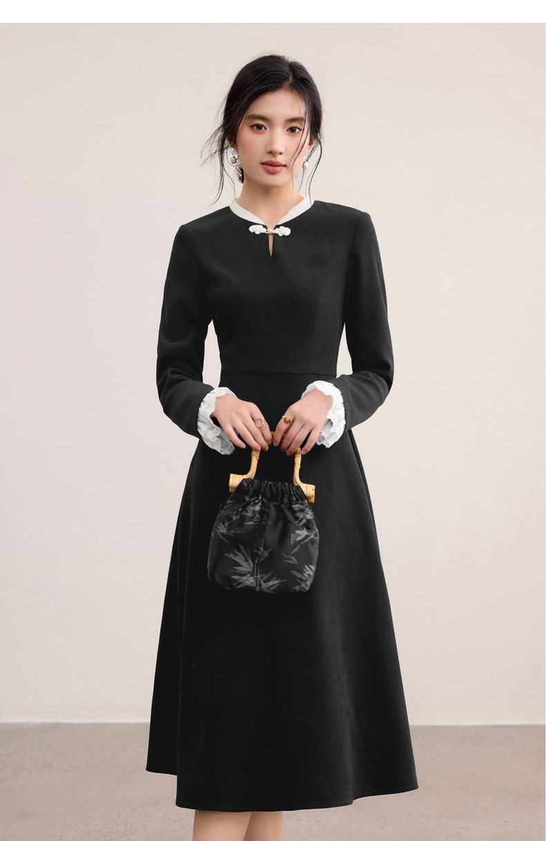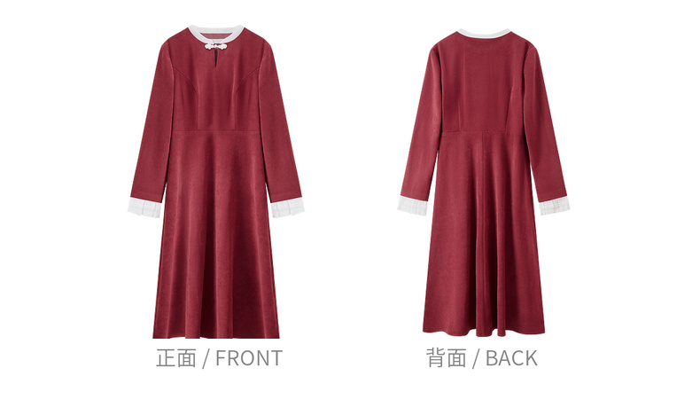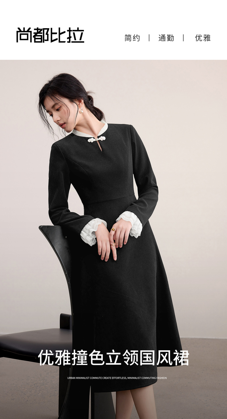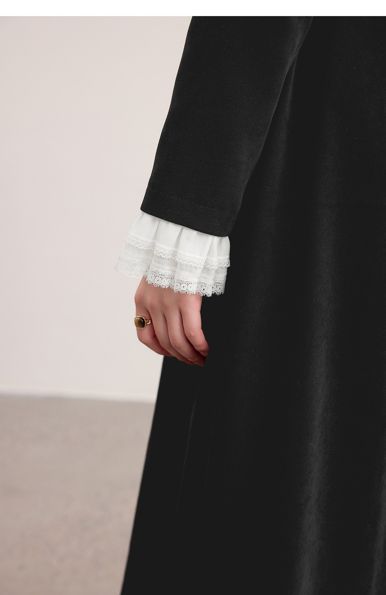 【内购】【国风裙】撞色花边立领拼接双层蕾丝花边荷叶袖收腰显瘦连衣裙-153LI2768