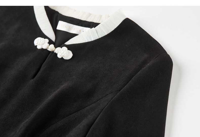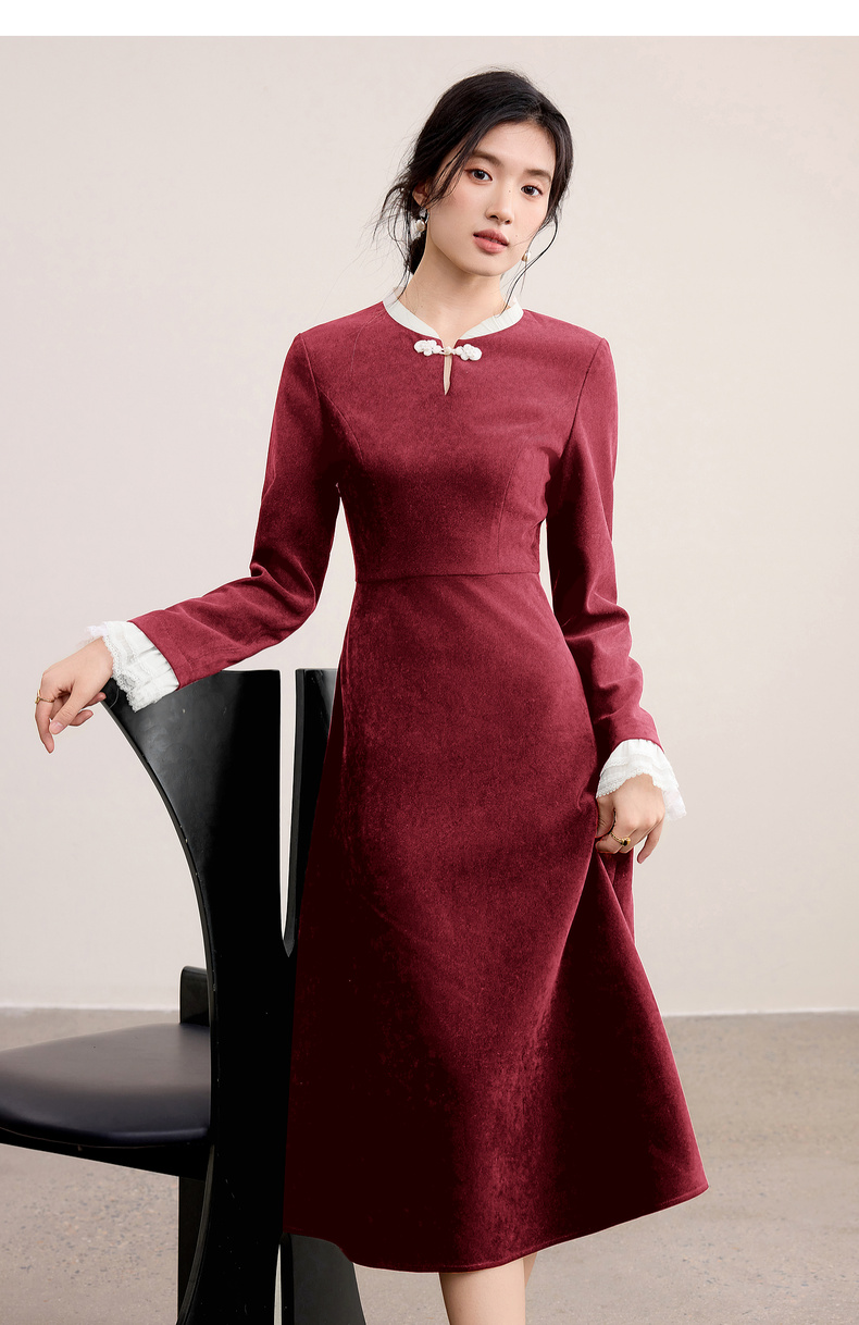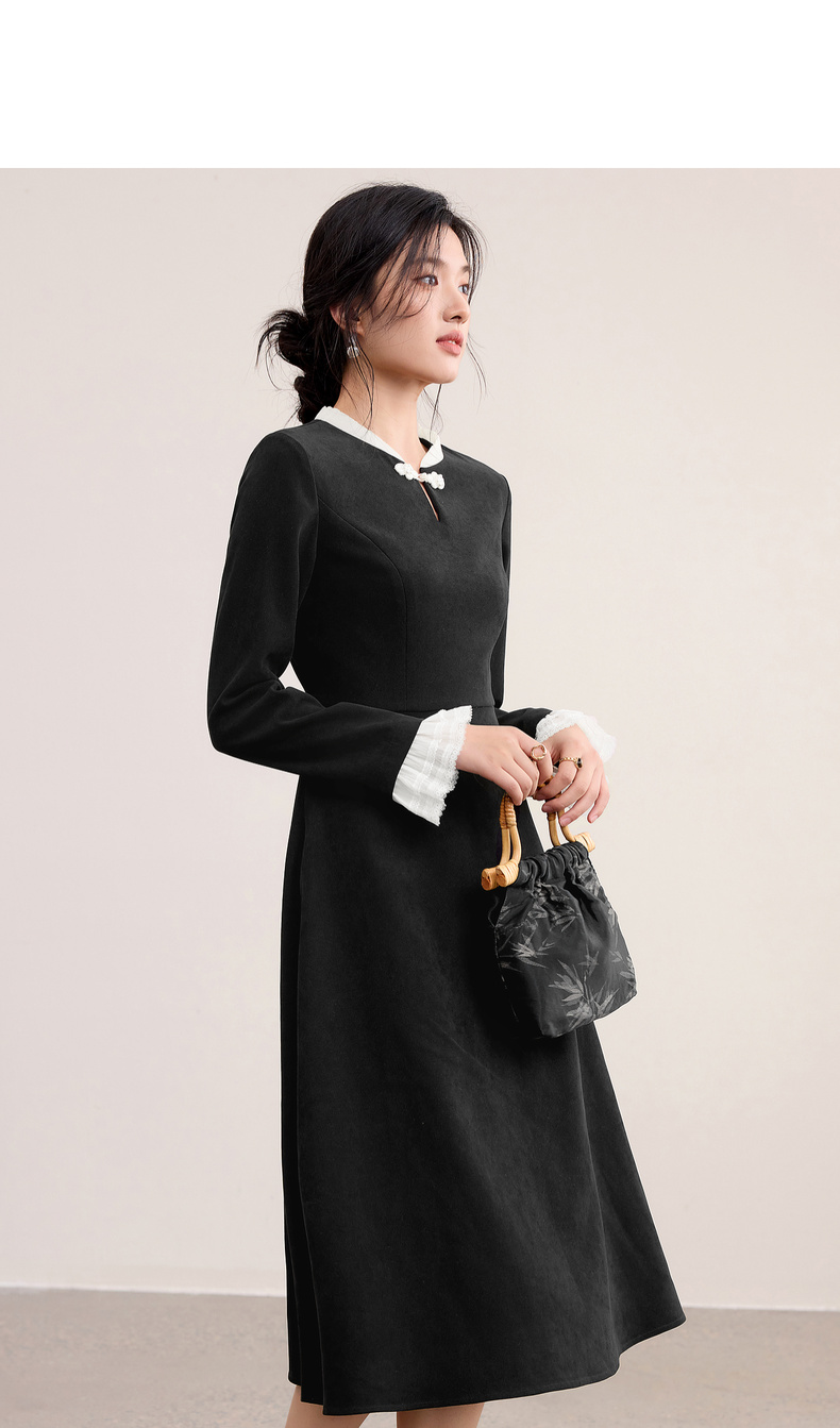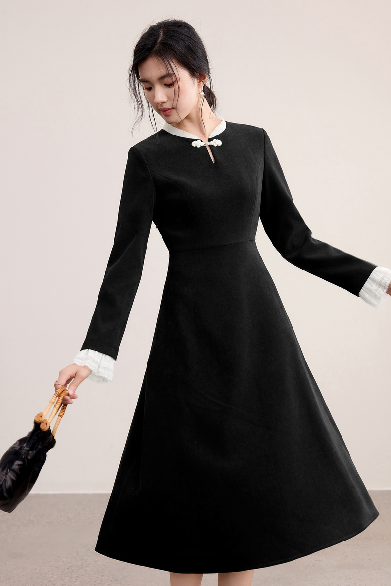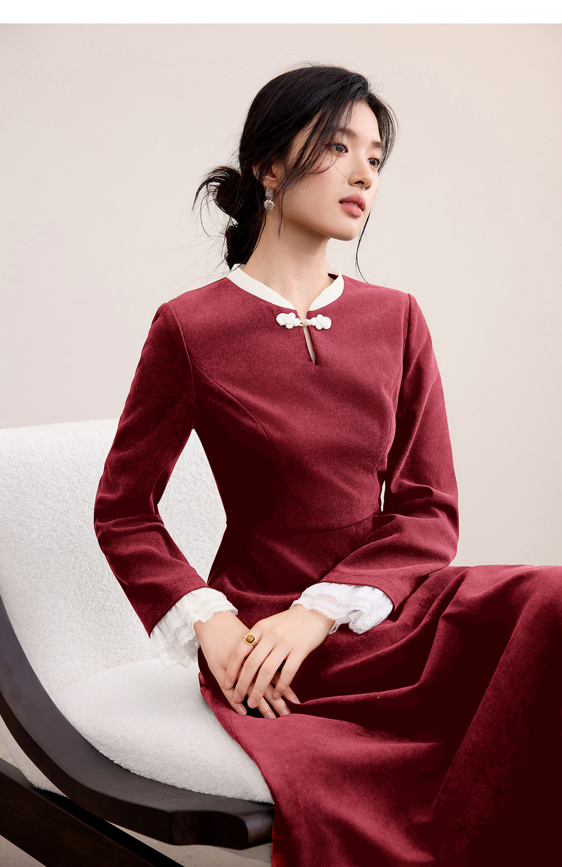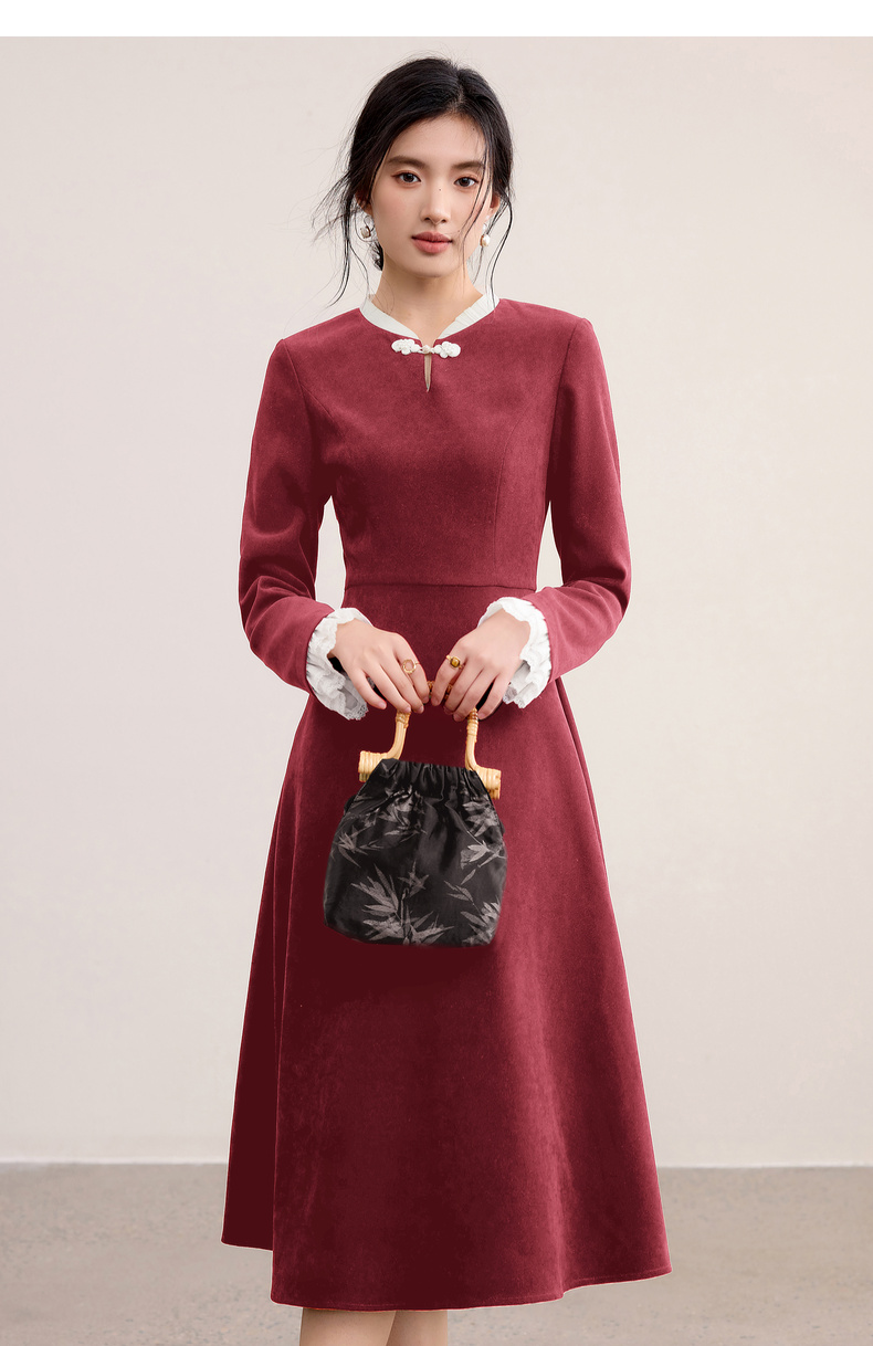 【内购】【国风裙】撞色花边立领拼接双层蕾丝花边荷叶袖收腰显瘦连衣裙-153LI2768