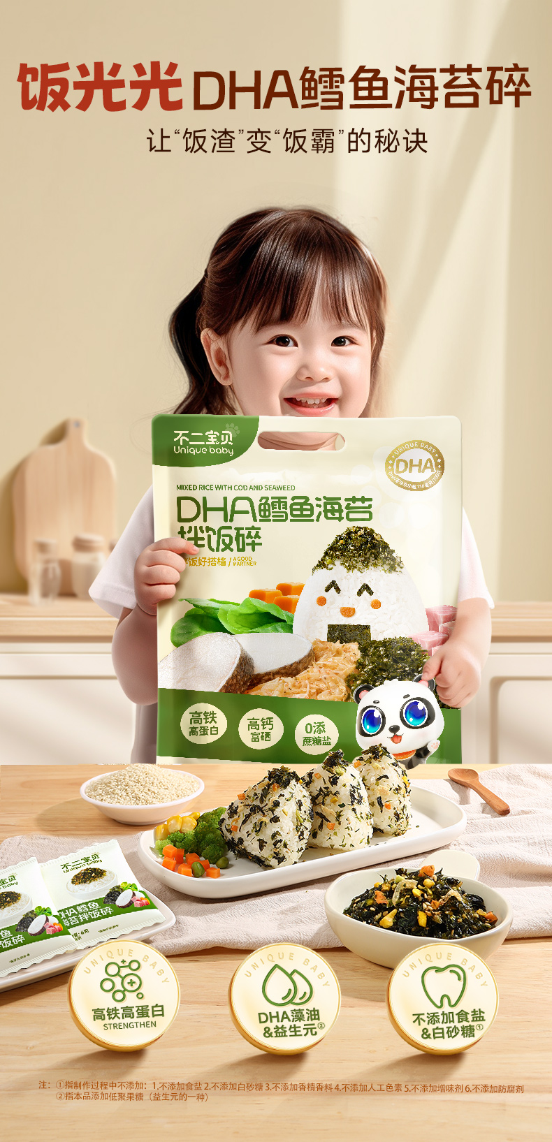 【不二宝贝】DHA鳕鱼肉松海苔碎拌饭90g儿童无添加宝宝婴幼儿辅食饭团