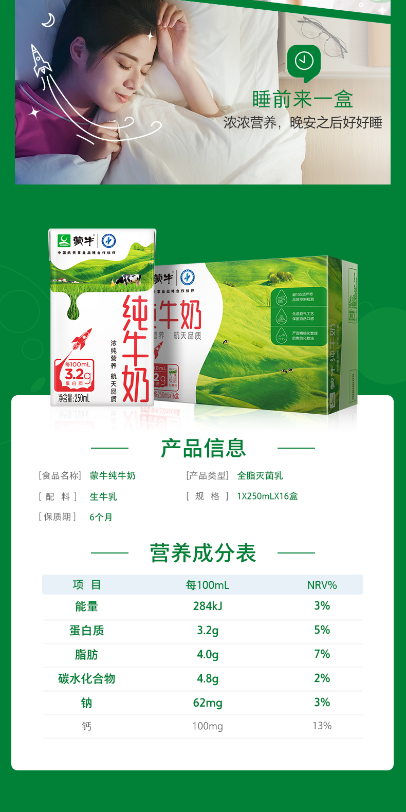 蒙牛纯牛奶 250ml×16包 浓醇营养 航天品质 包邮