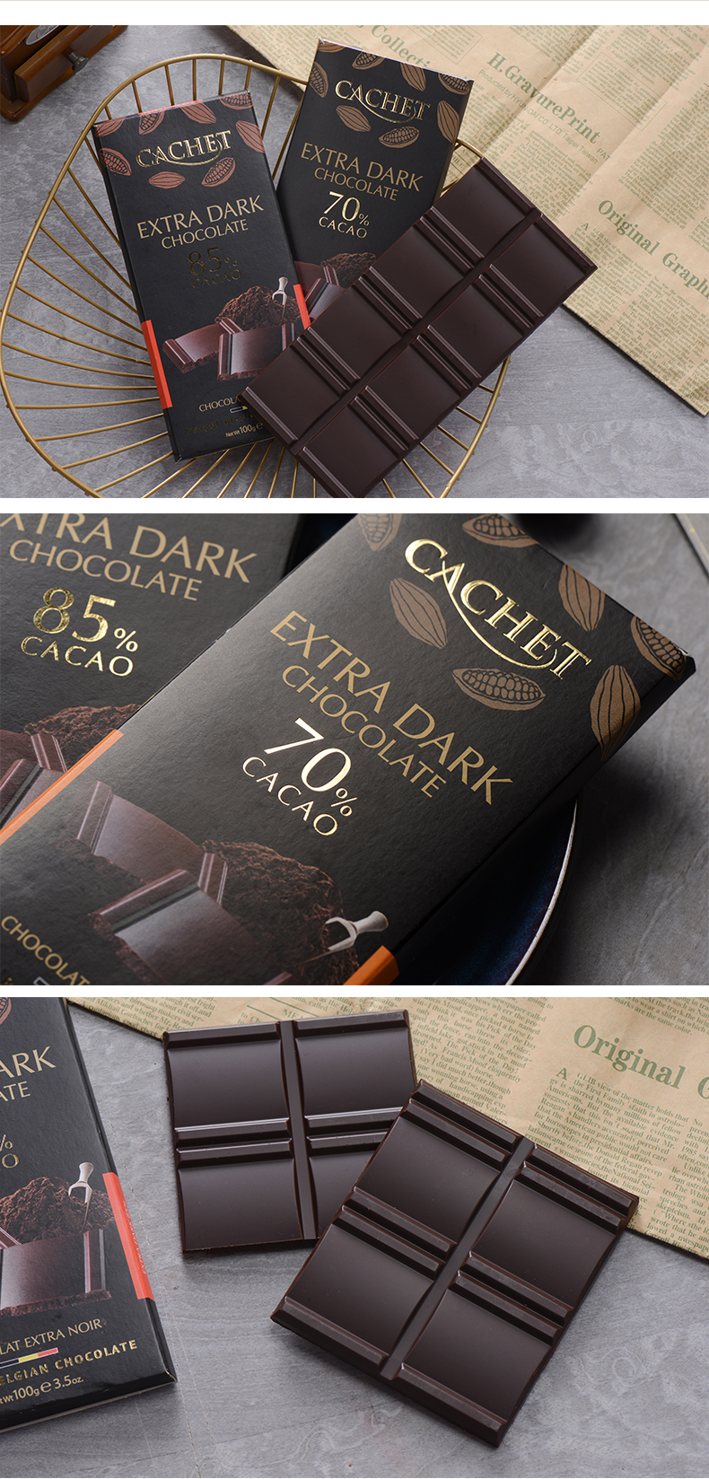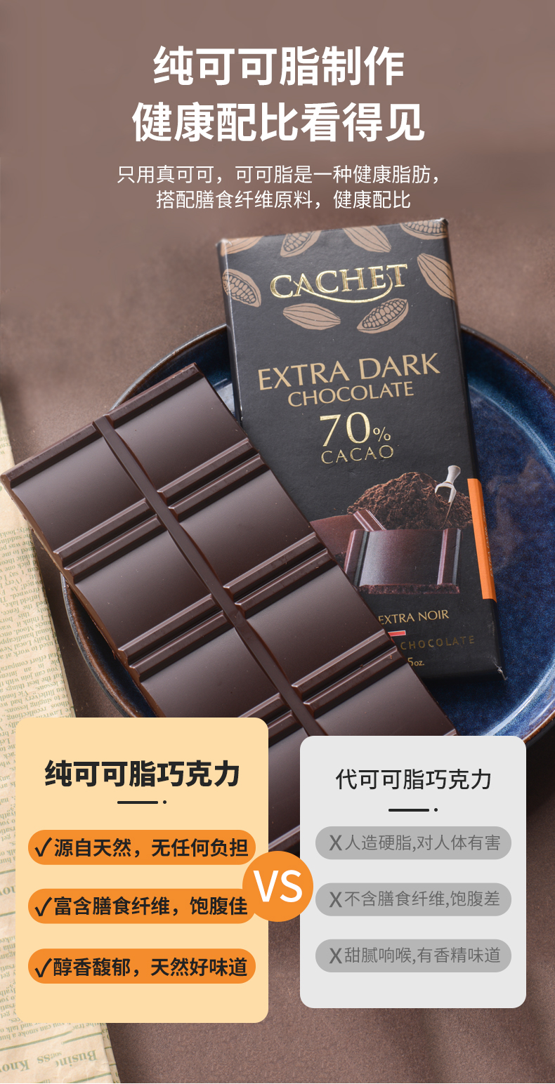 比利时Cachet凯撒黑巧克力100g 70%|85% 纯可可脂制作 健康配比 044825/044826