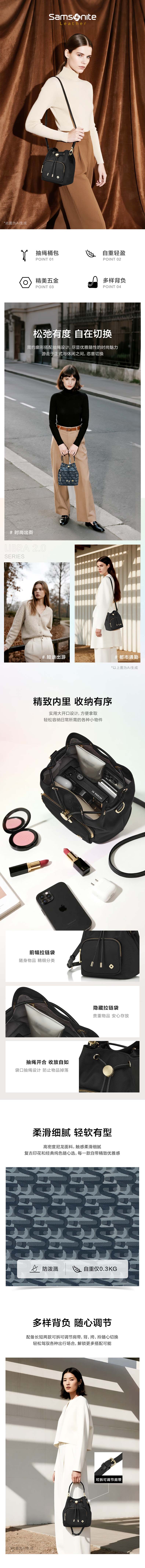 新秀丽LIBRA 2.0自重轻盈抽绳桶包NO3*027