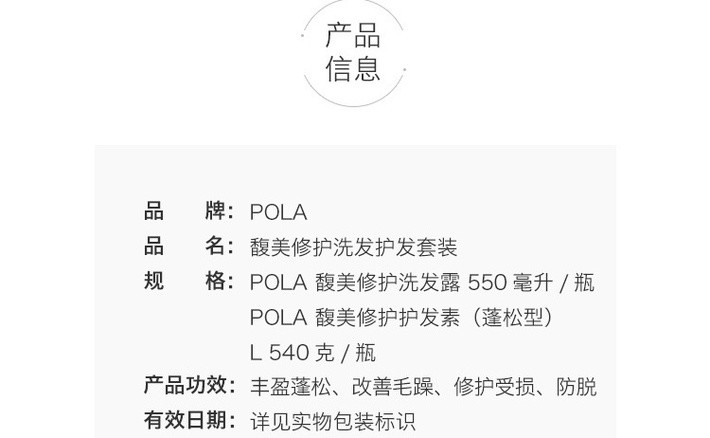 【香港直邮】POLA宝丽馥美修护洗发水充盈型护发素550ml+540g