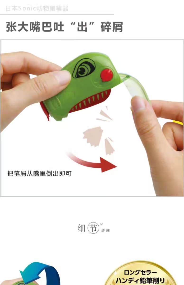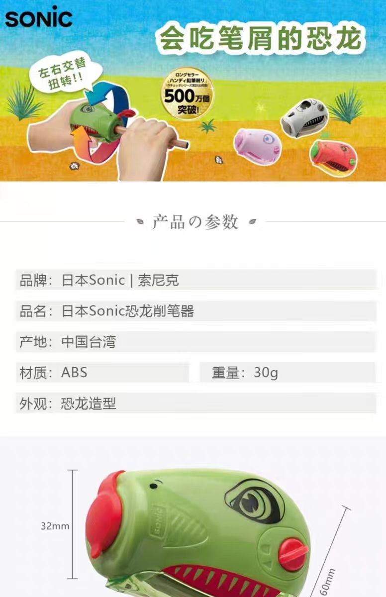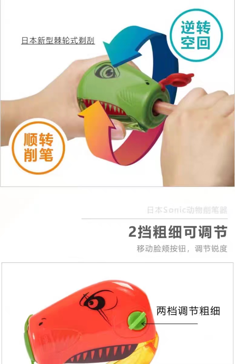 日本sonic索尼克恐龙削笔器转笔刀两档笔尖可调铅笔刀