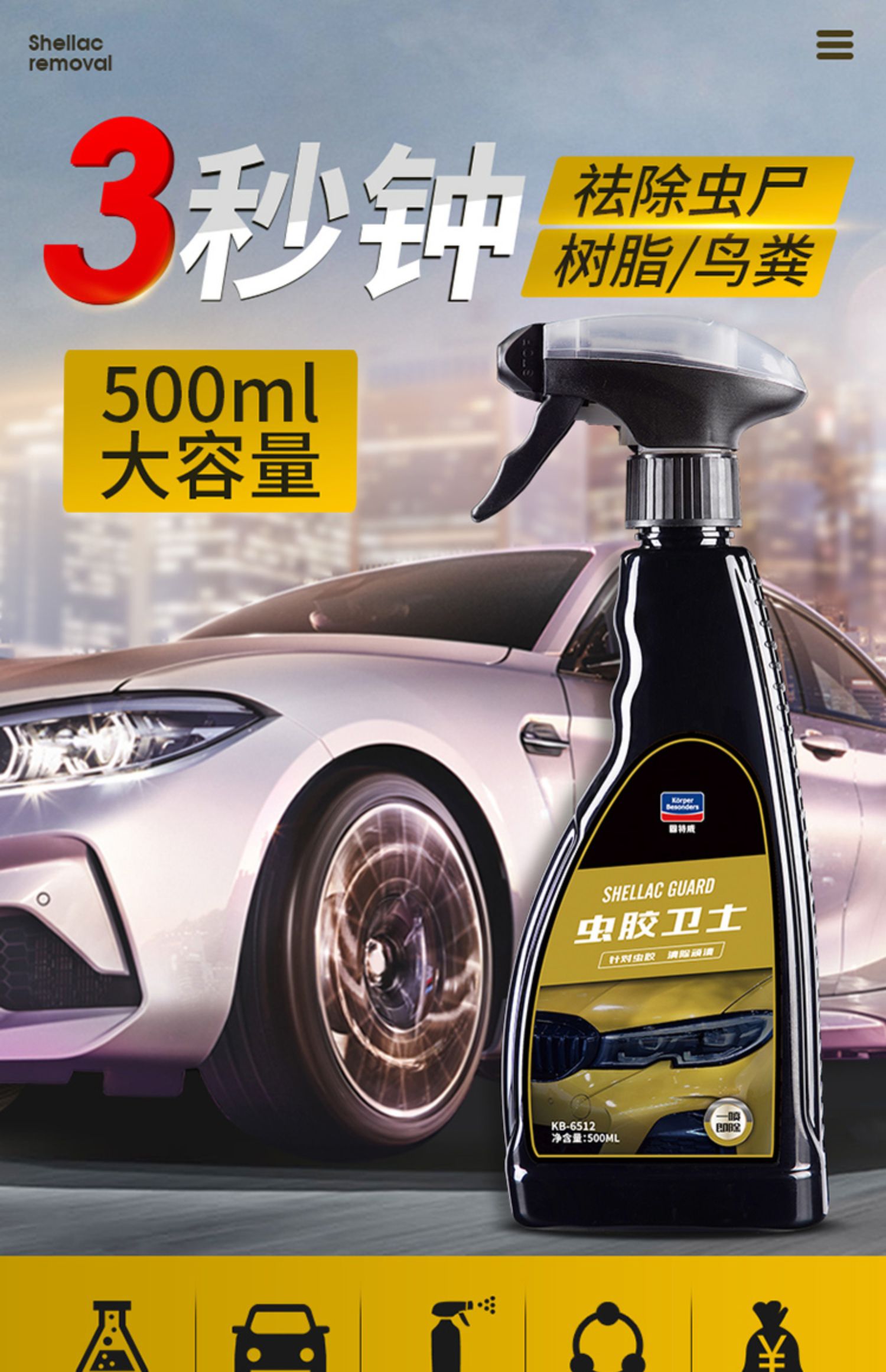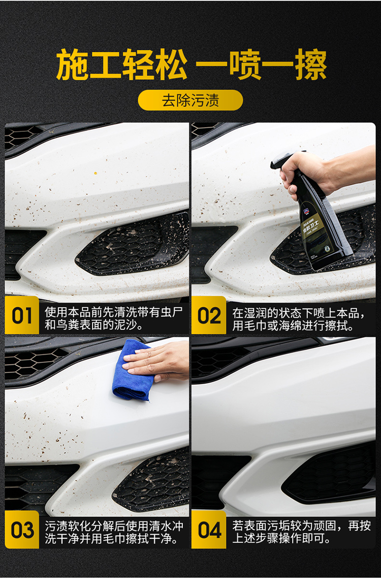 虫胶树胶鸟粪清洗不伤漆面除胶剂