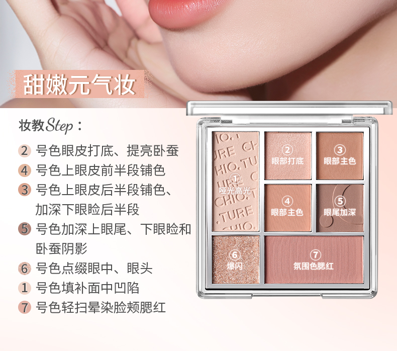 稚优泉七色眼影盘高光腮红卧蚕爆闪哑光珠光大地色日常淡妆彩妆女