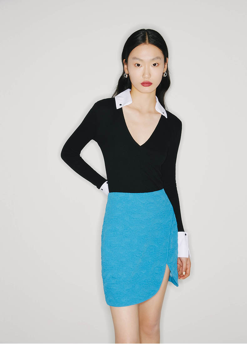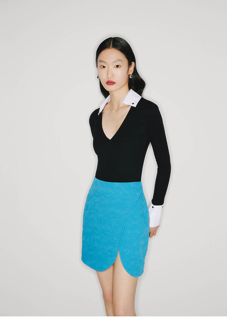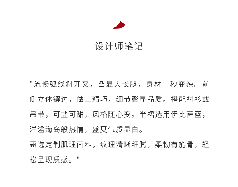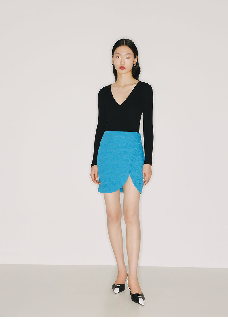 【岛屿环游】圆弧下摆拼接伊比萨蓝质感肌理面料开叉短裙/220004