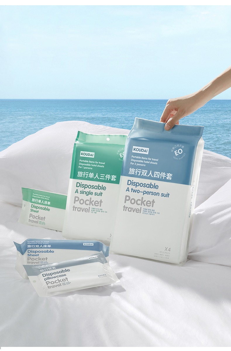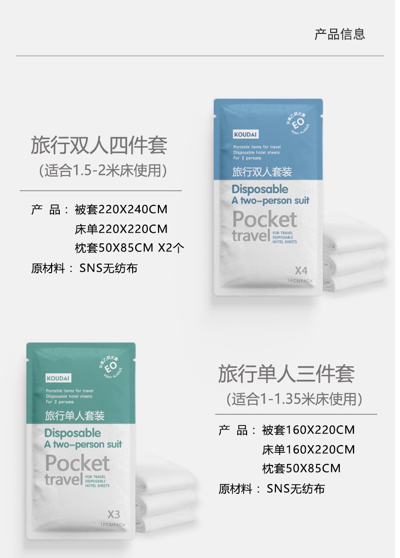 口袋旅行 一次性床单被罩枕套被套四件套三件套 出差旅游酒店床上用品