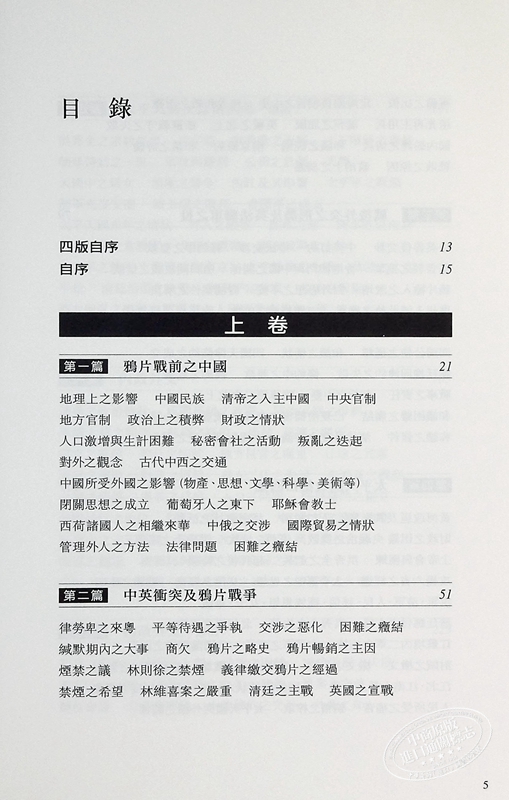 律勞卑之來粵 平等待遇之爭執 交涉之惡化 困難之癥結 緘默期內之大事 商欠 鴉片之略史 鴉片暢銷之主因 煙禁之議 林則徐之禁煙 義律繳交鴉片之經過 禁煙之希望 林維喜案之嚴重 清廷之主戰 英國之宣戰 軍備之比較 定海陷後朝旨之中變 琦善和戰之兩難 道光再主用兵 廣州之屈服 英艦之北上 浙蘇戰守之失敗 國內紛擾之情狀 和議之經過 南京條約 和議之評論 戰敗之原因 政治上之弱點