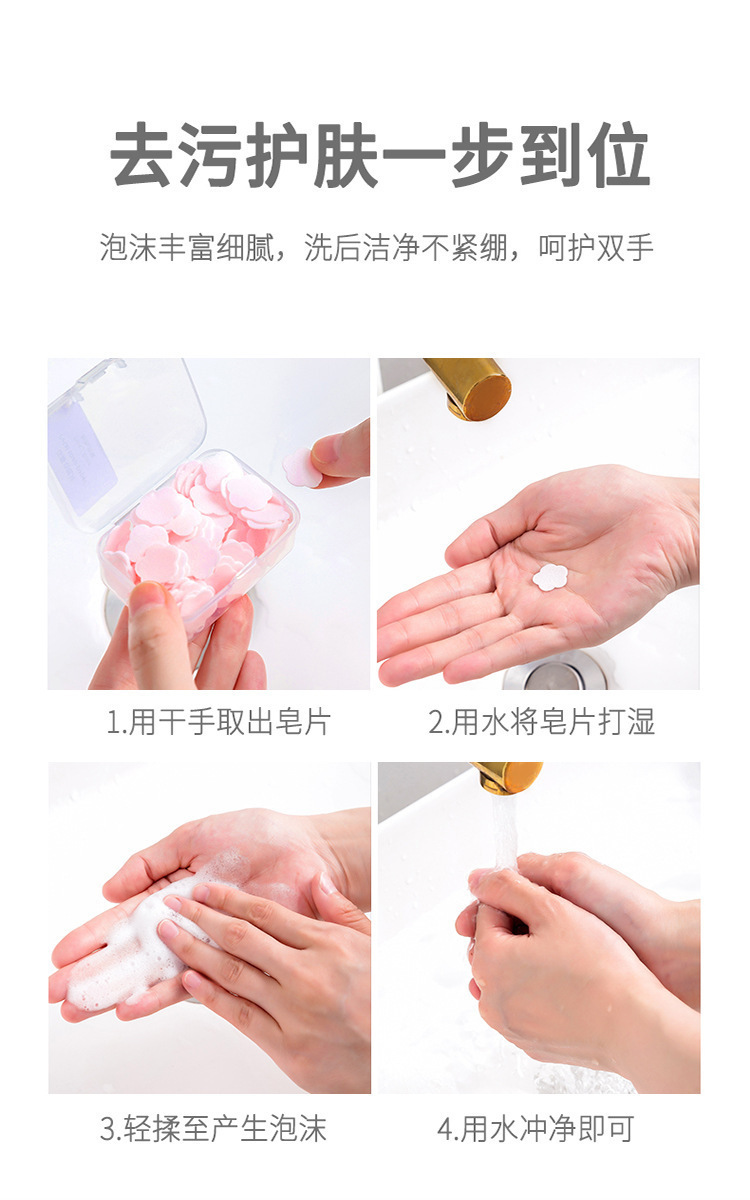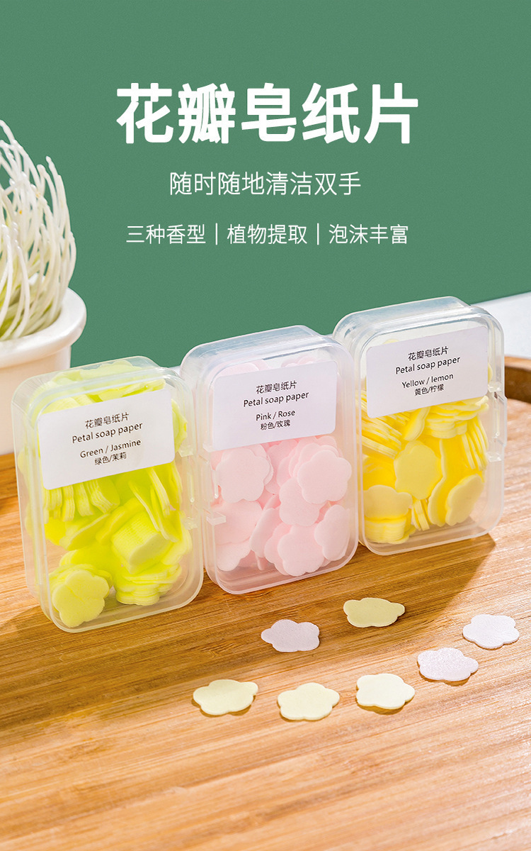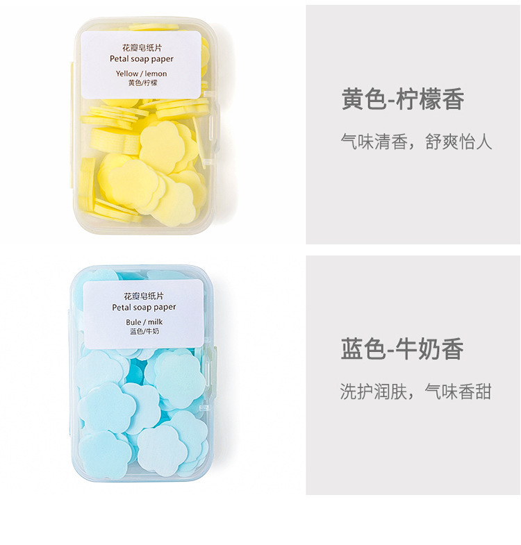 【超值9.9五盒!】新款一次性香皂片 便携式黄色抑菌 学生儿童随身携带 迷你花瓣洗手片-QA