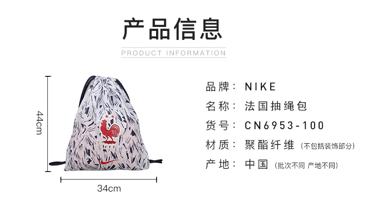 小李子:专柜正品NIKE耐克20-21赛季法国队装备袋收口袋CN6953-100