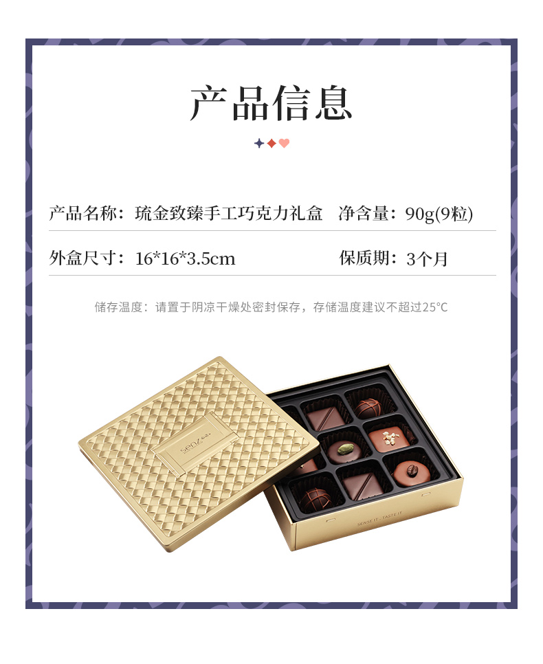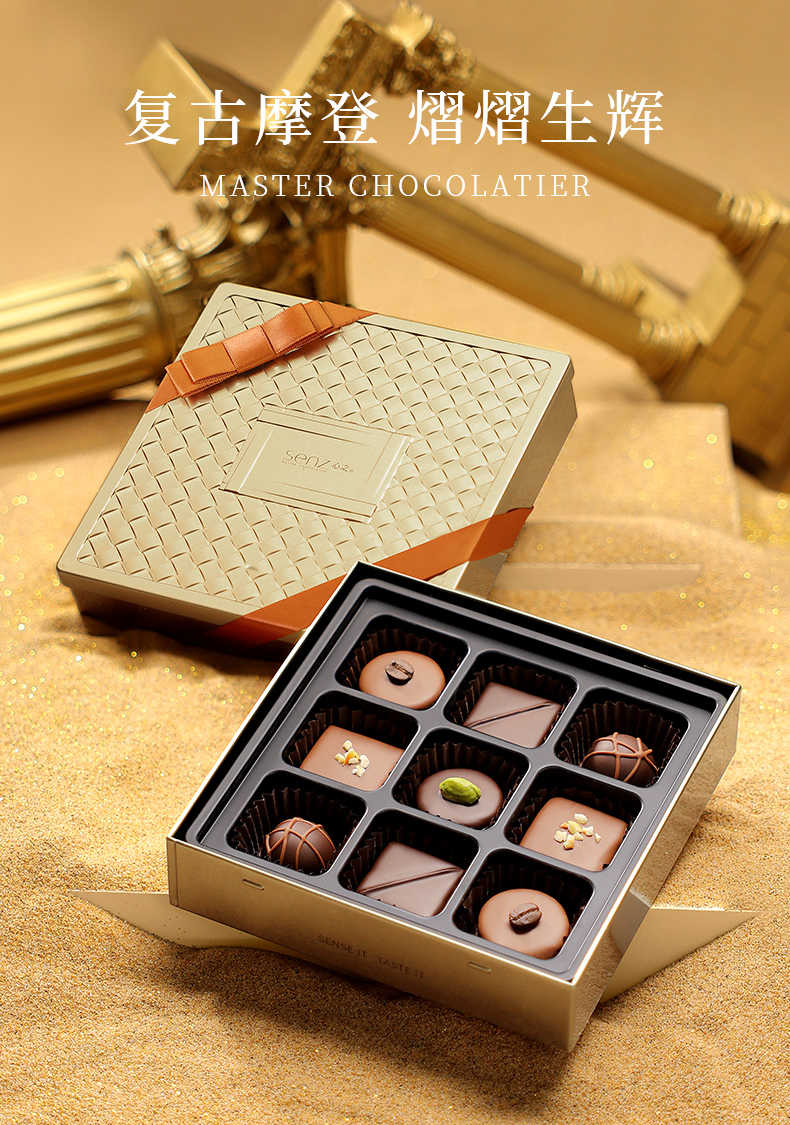 心之SENZ【琉金致臻】9粒手工甘纳许夹心巧克力礼盒