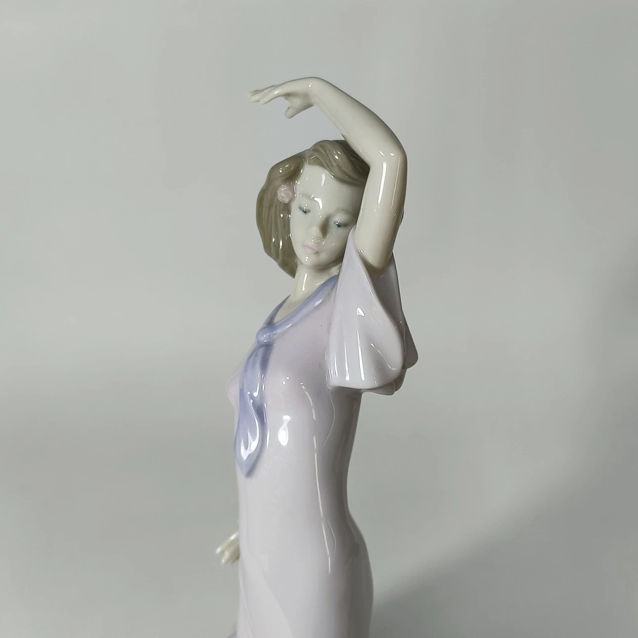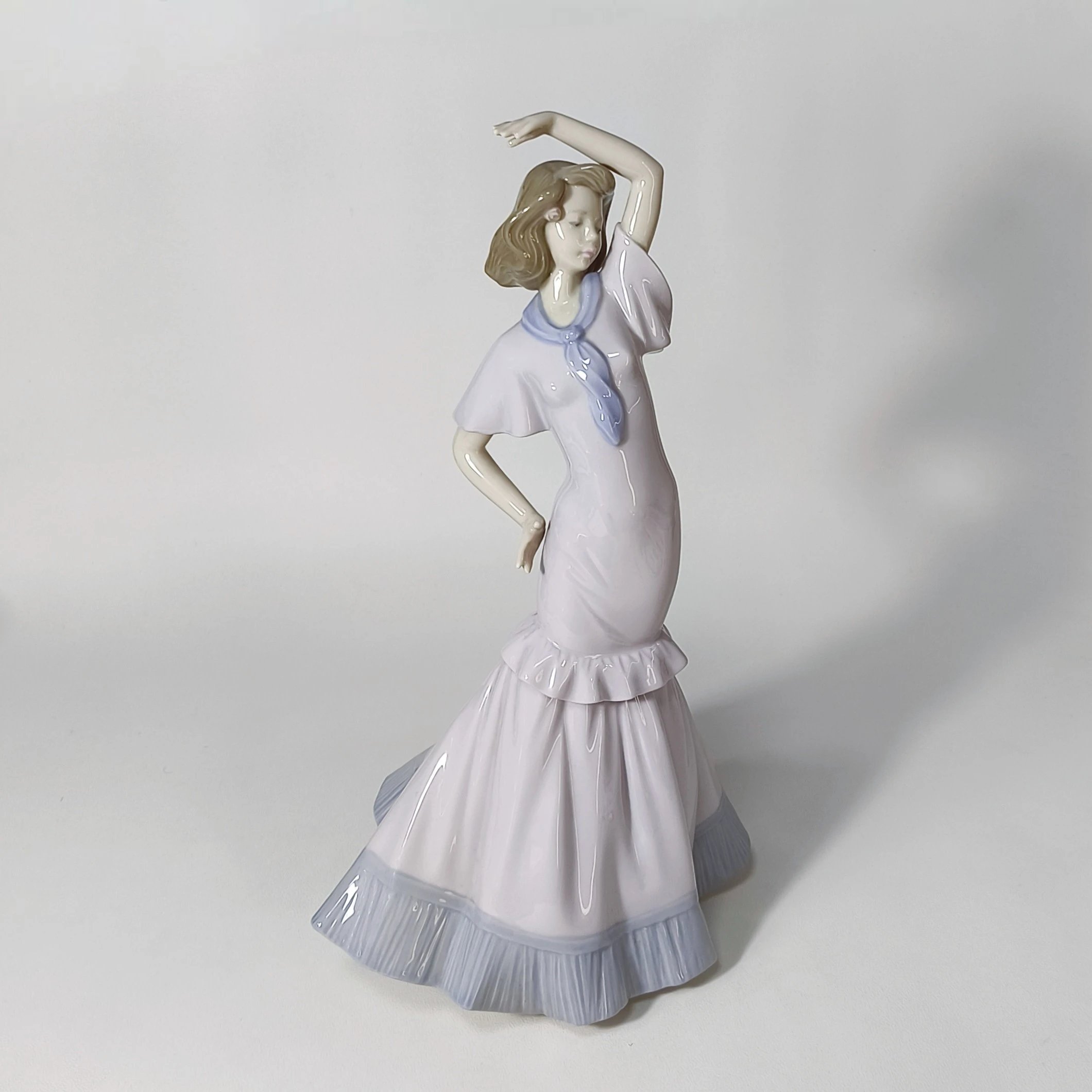 西班牙雅致子品牌Nao大款瓷偶,人物形象唯美典雅,女孩随着音乐翩翩起舞,裙摆的弧度和手部细节塑造到位。高33cm,宽20cm,1080出