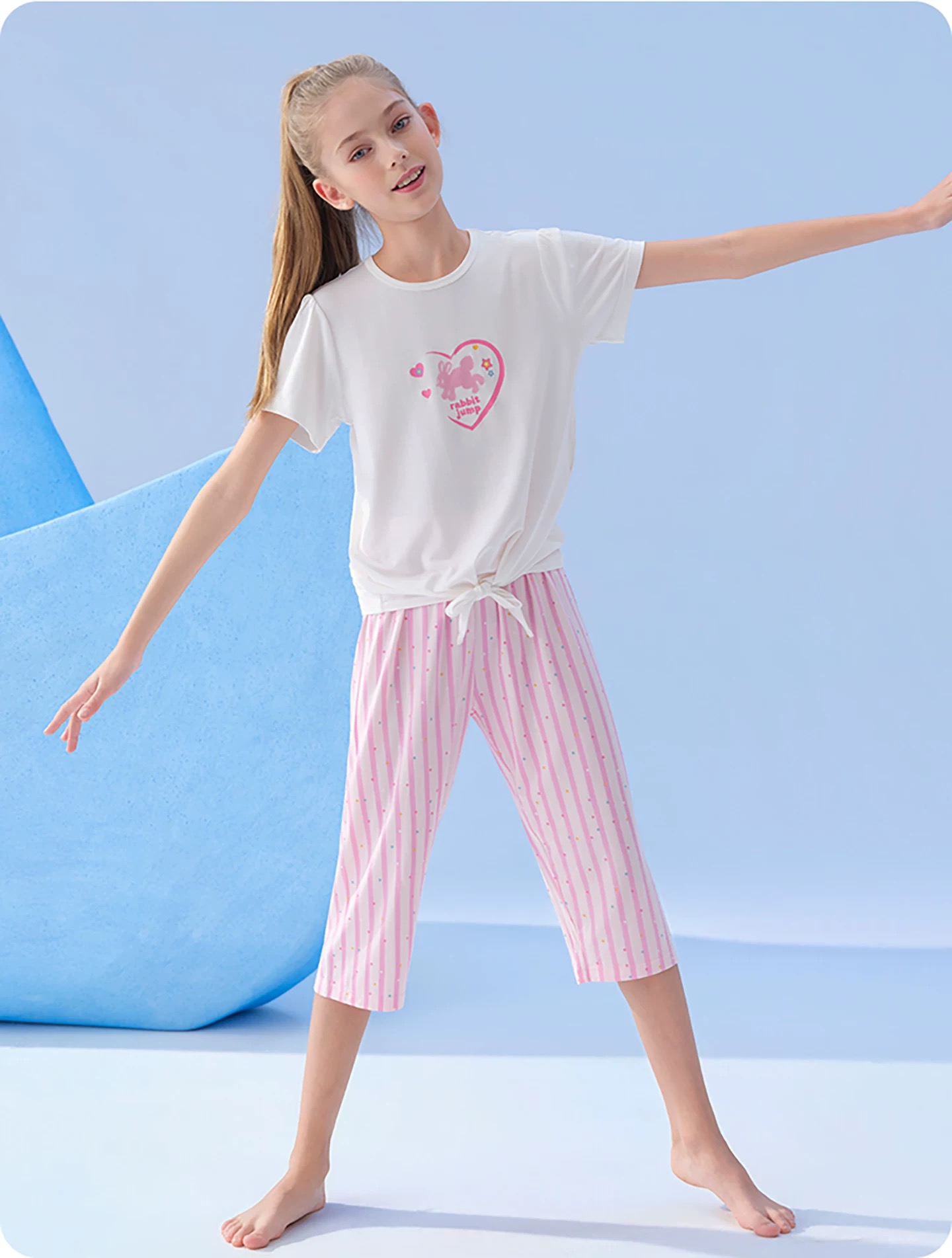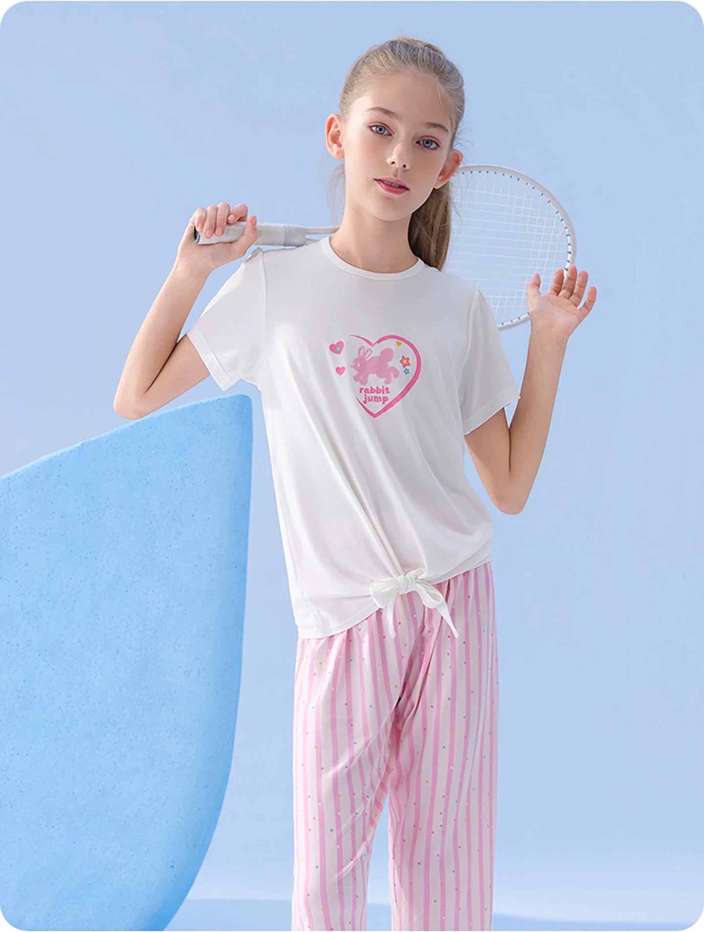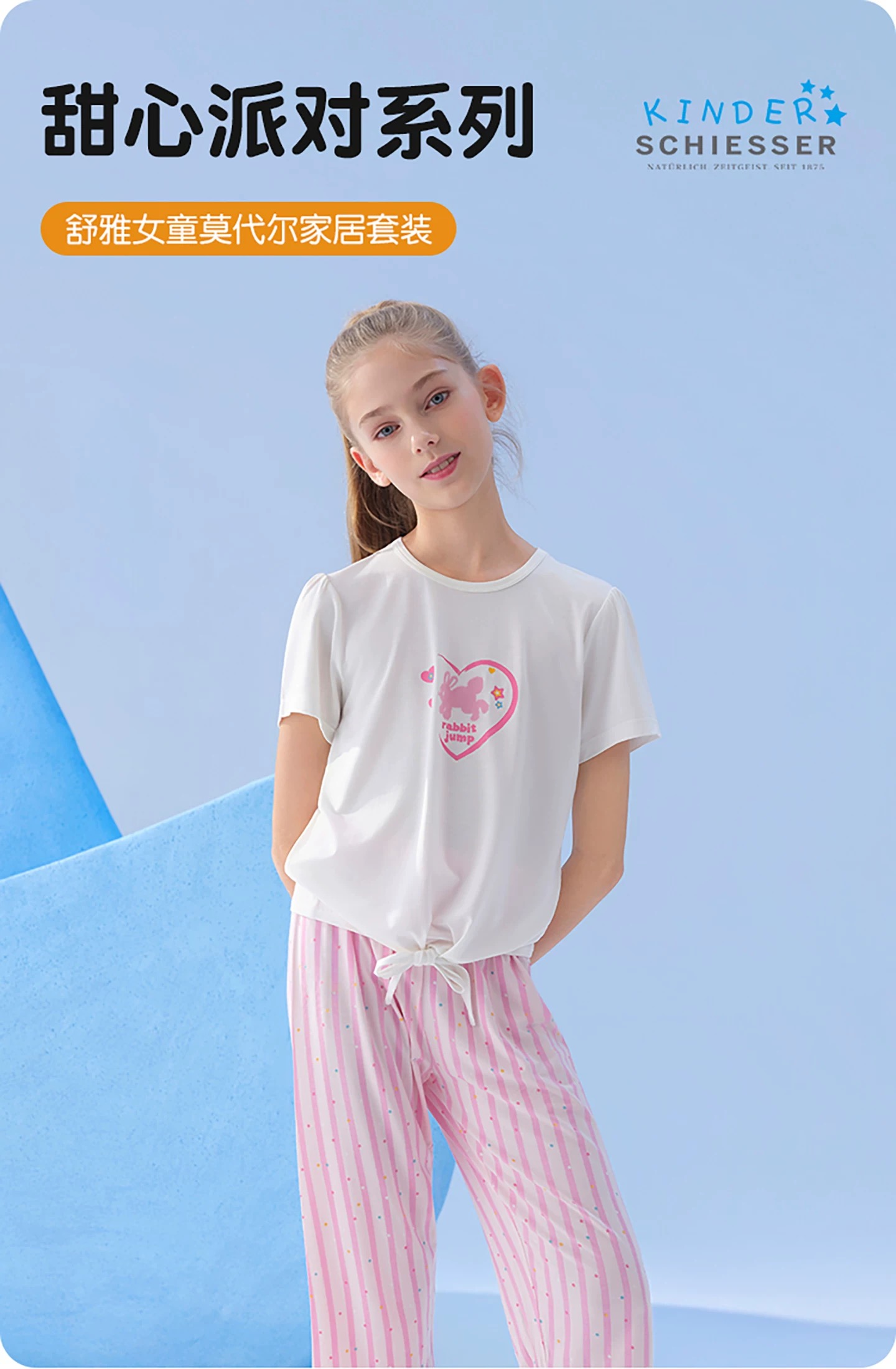 【甜心派对】SCHIESSER德国舒雅女童莫代尔轻柔舒适可爱小兔家居休闲套装大童款(140码-170码)3F/27271H