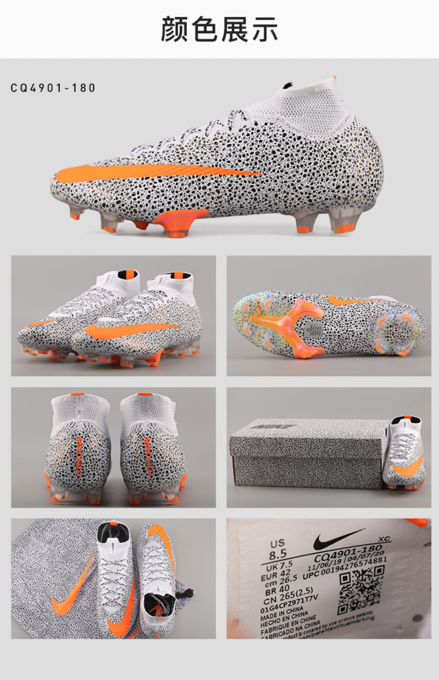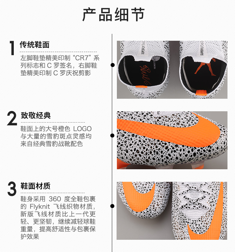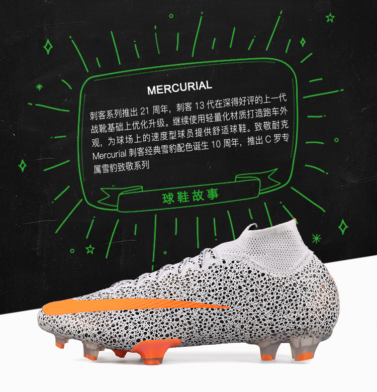 小李子NIKE耐克刺客13雪豹超顶高帮CR7 FG长钉足球鞋CQ4901-180