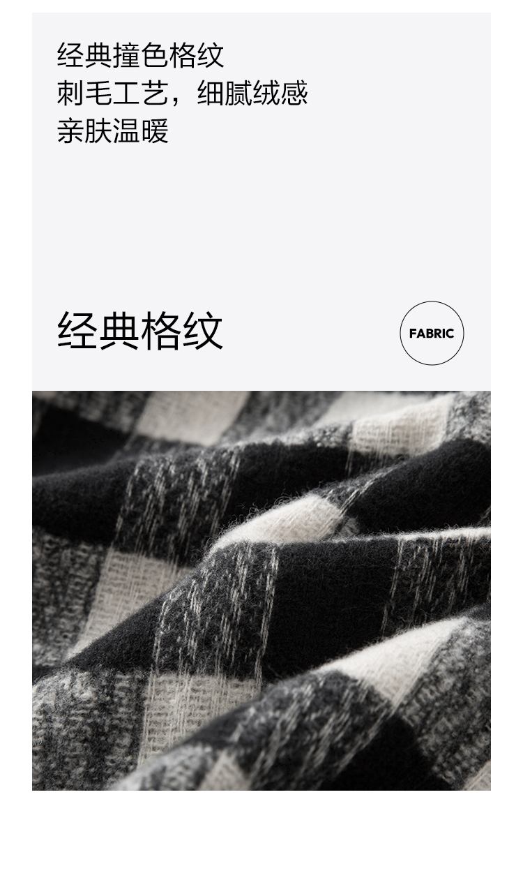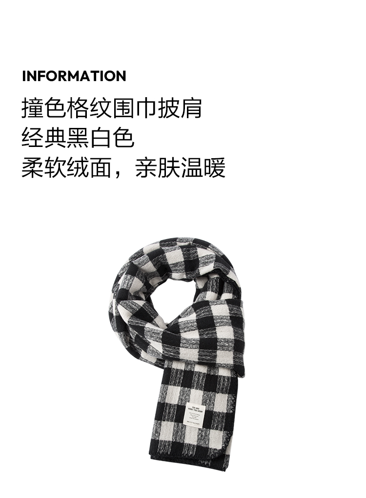 森马围巾女2024秋冬新款韩系格纹披肩加宽两用温暖绒面围脖撞色潮