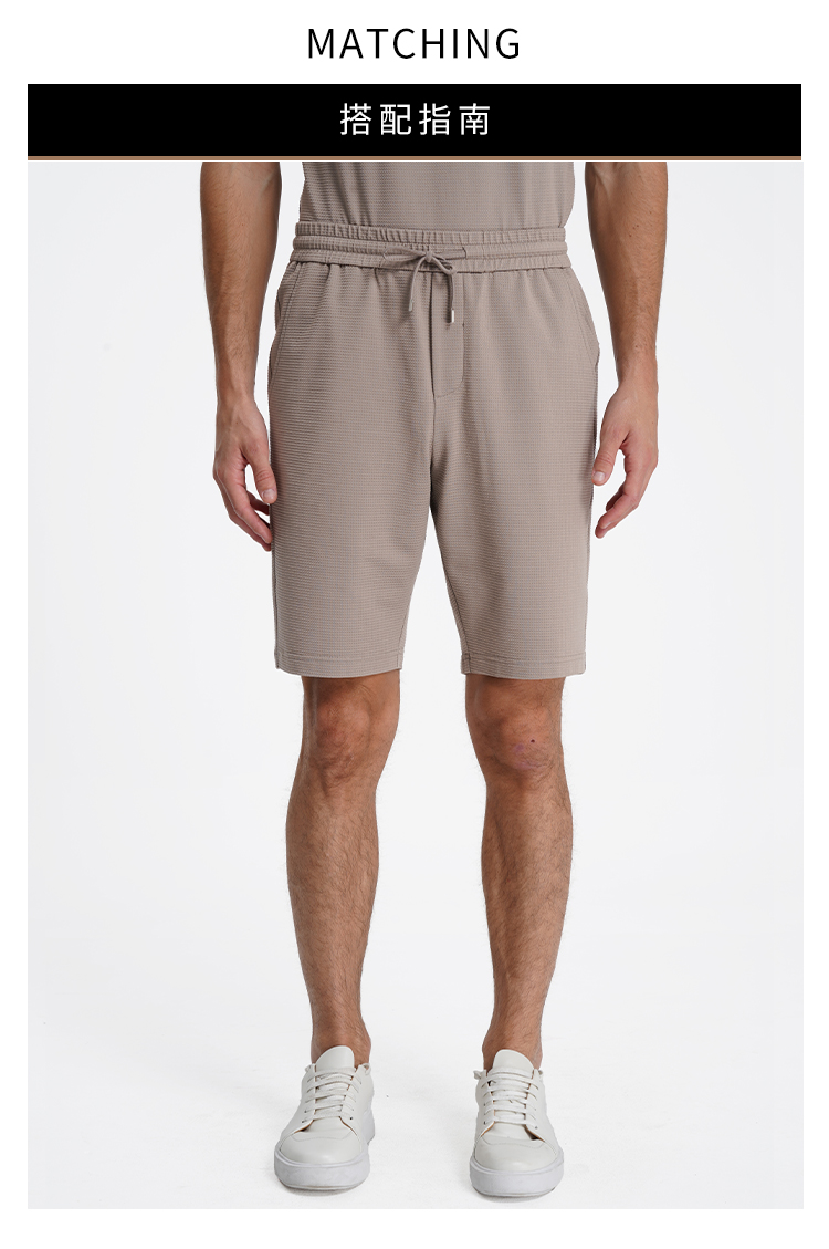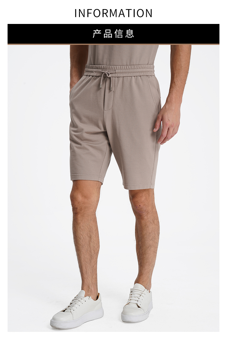 callisto卡其丝绵混纺华夫格微泡肌理运动休闲套装短裤