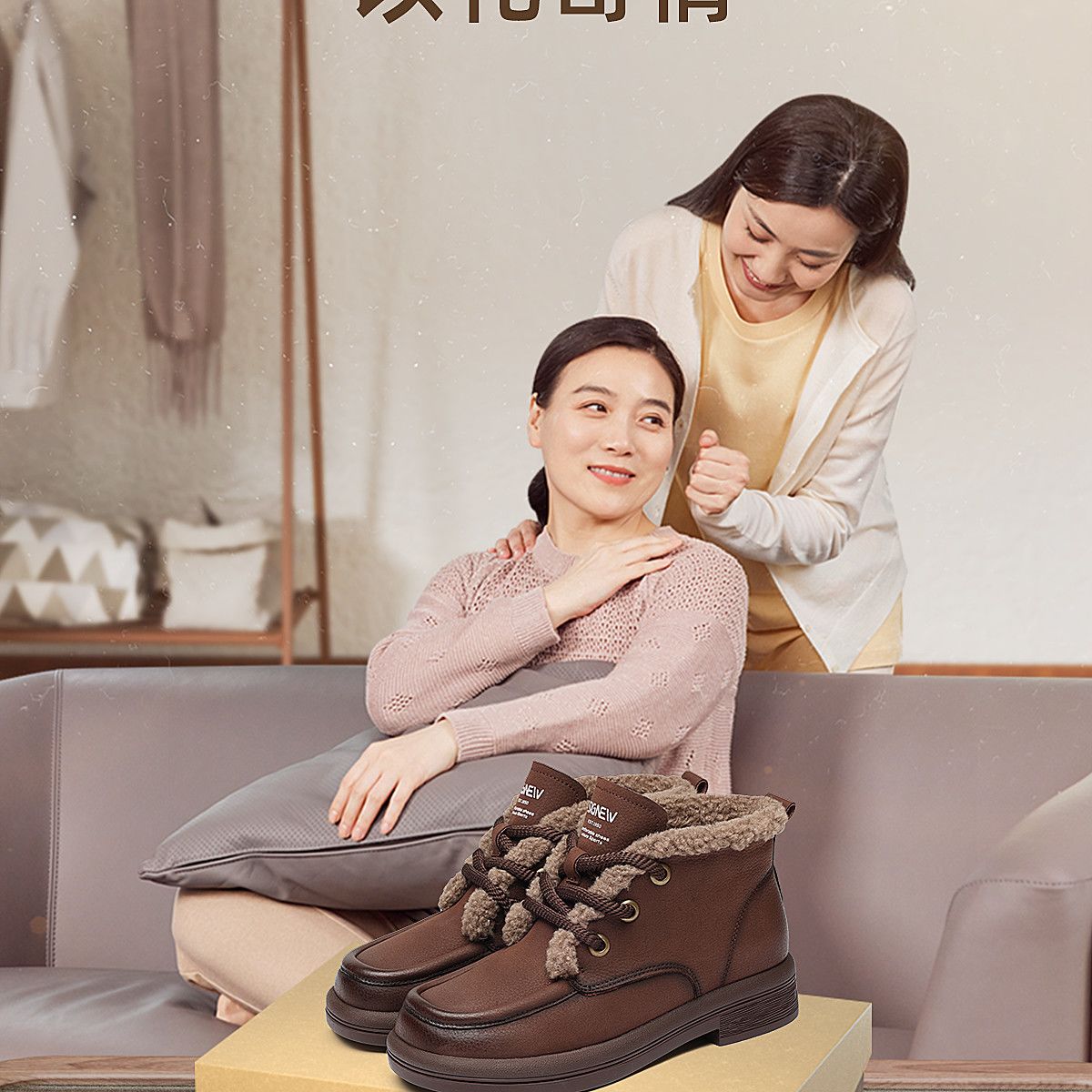 信诺轻便复古2025秋冬新款加绒雪地靴保暖马丁靴时尚百搭妈妈棉靴5M353-2TH