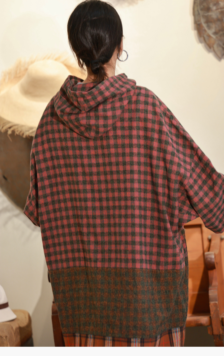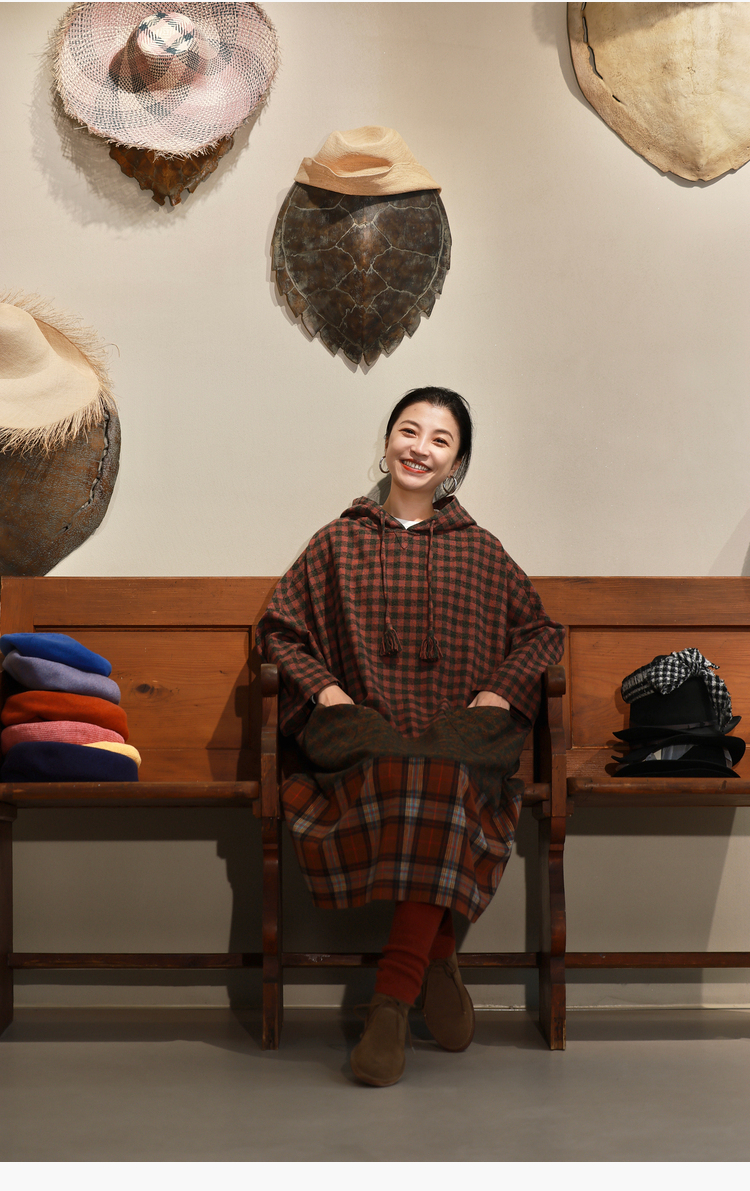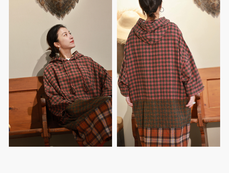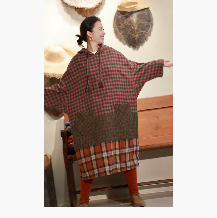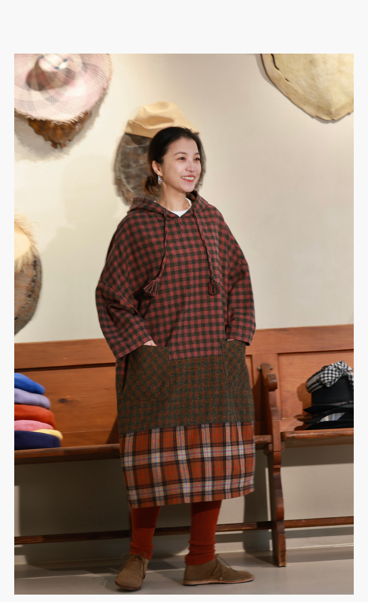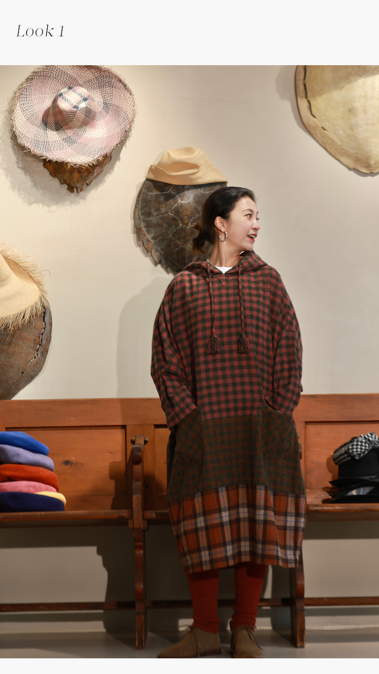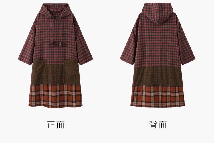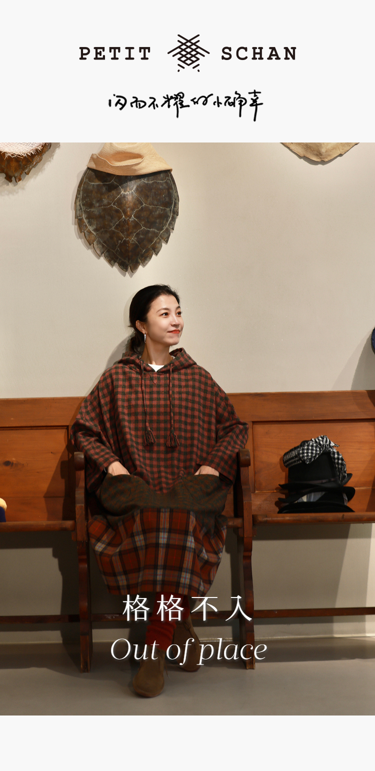 Petit Schan小闪 CLO#1049 Out of place 格格不入 进口纯棉磨毛拼色格纹抽绳连帽连衣裙