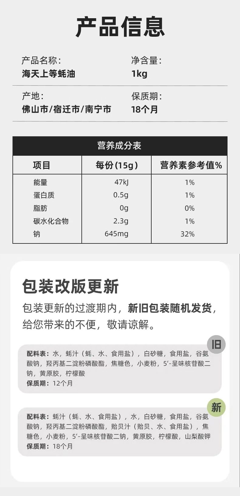【一挤鲜到位!海天上等蚝油】甄选品质上好蚝汁,真材实料,正立倒放,畅享每一滴鲜味,上色/提鲜/增香三合一,餐饮家用厨房调味料L新年礼盒年货礼盒