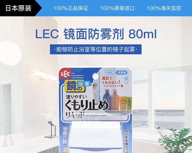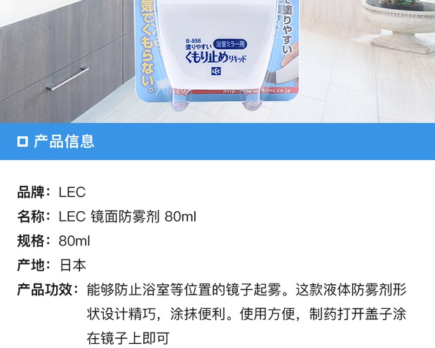 【镜子再也不朦胧】LEC 镜面防雾剂 80ml