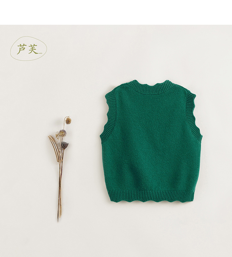 【马克珍妮 芦芙】秋装新款 女童绵羊毛花边V领针织马甲 231913
