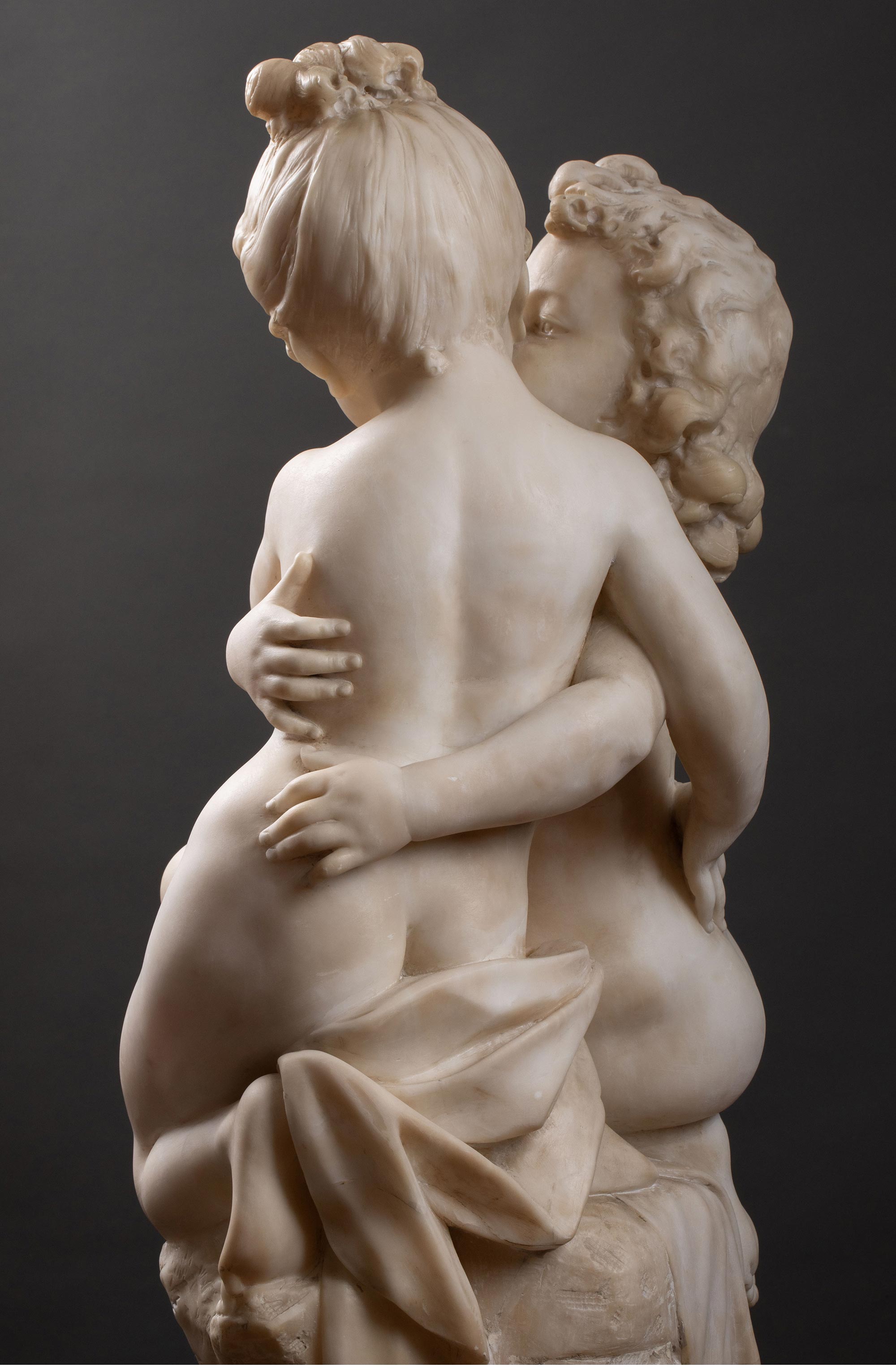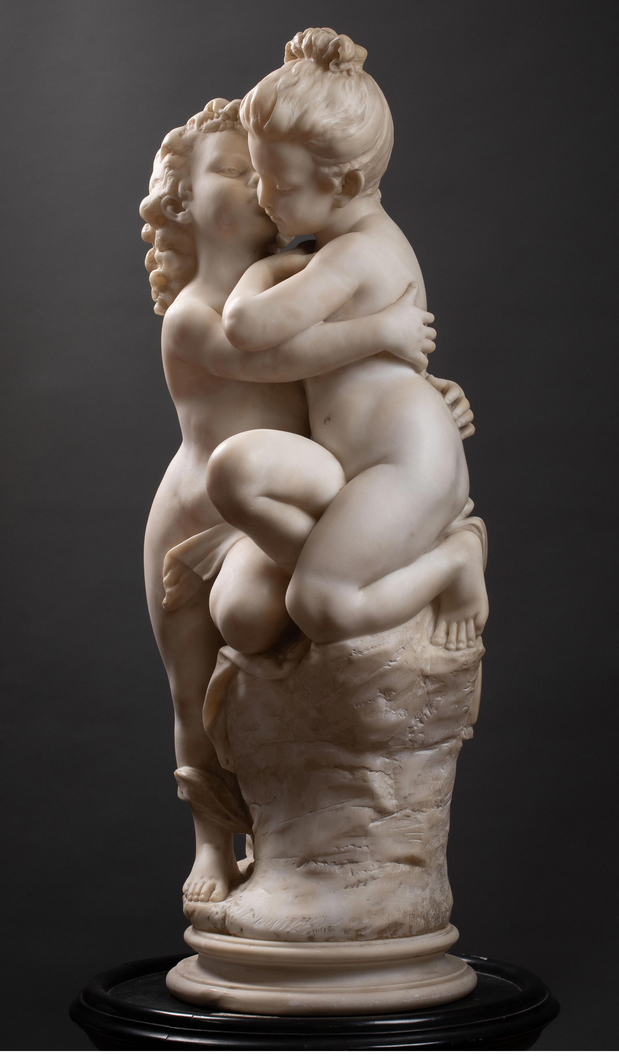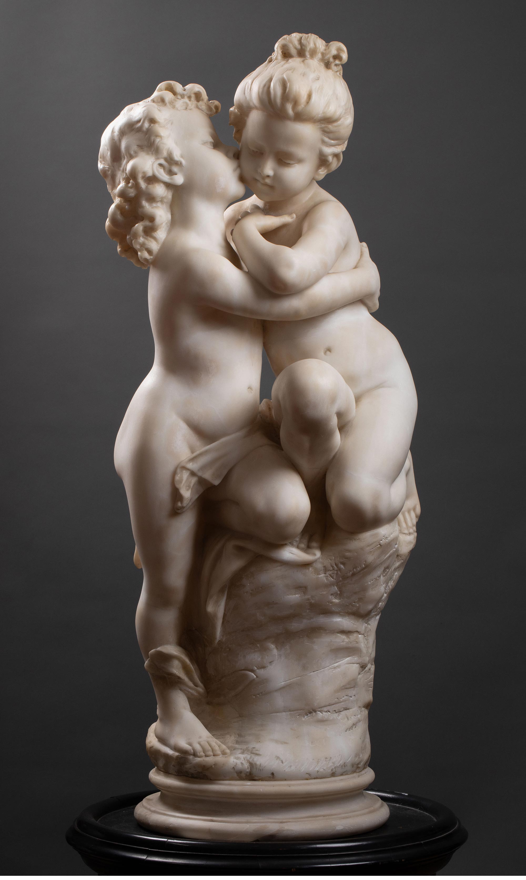 19世纪法国雕塑名家AUG MOREAU签名出品大理石人物雕塑《幼年丘比特与普赛克》