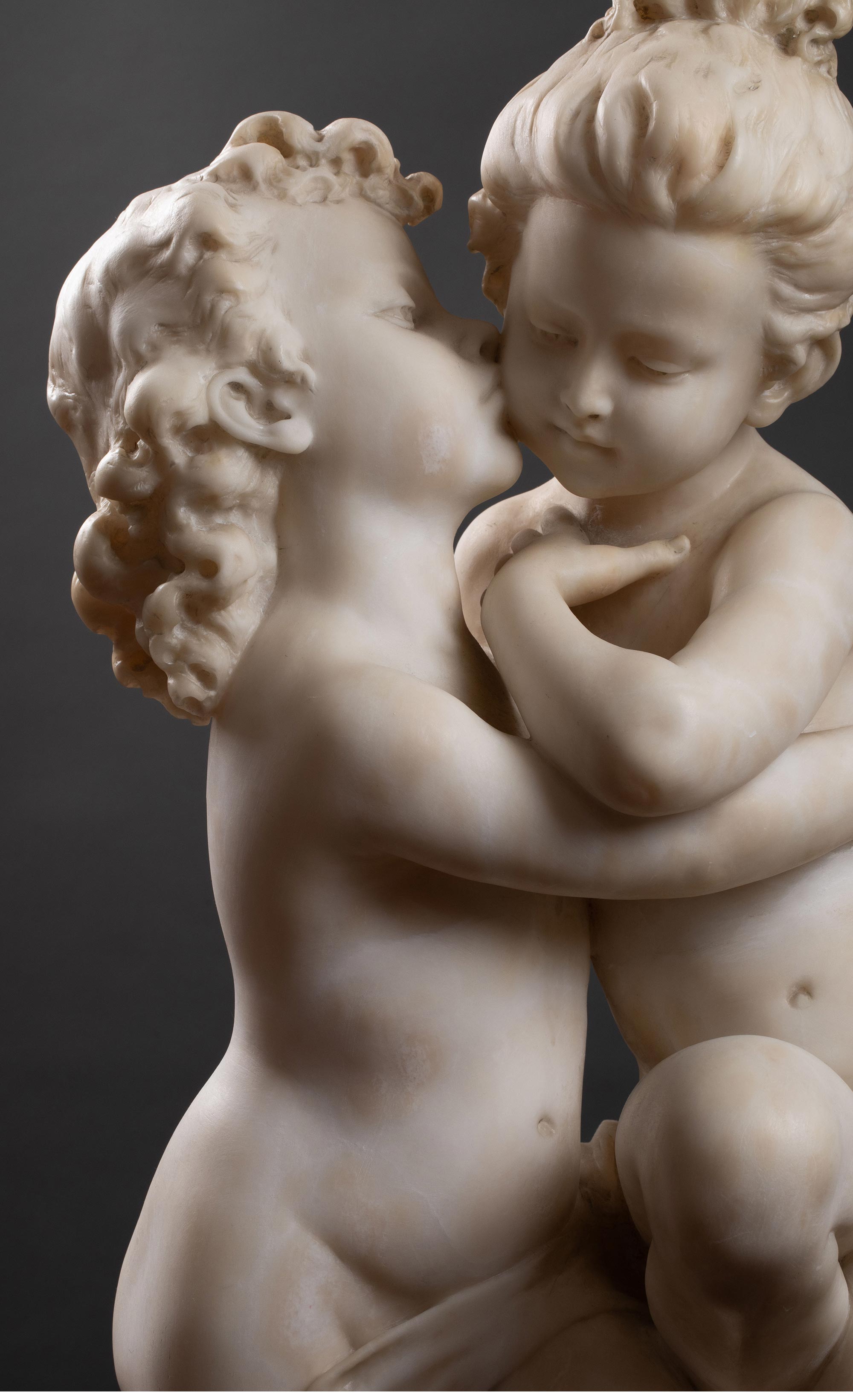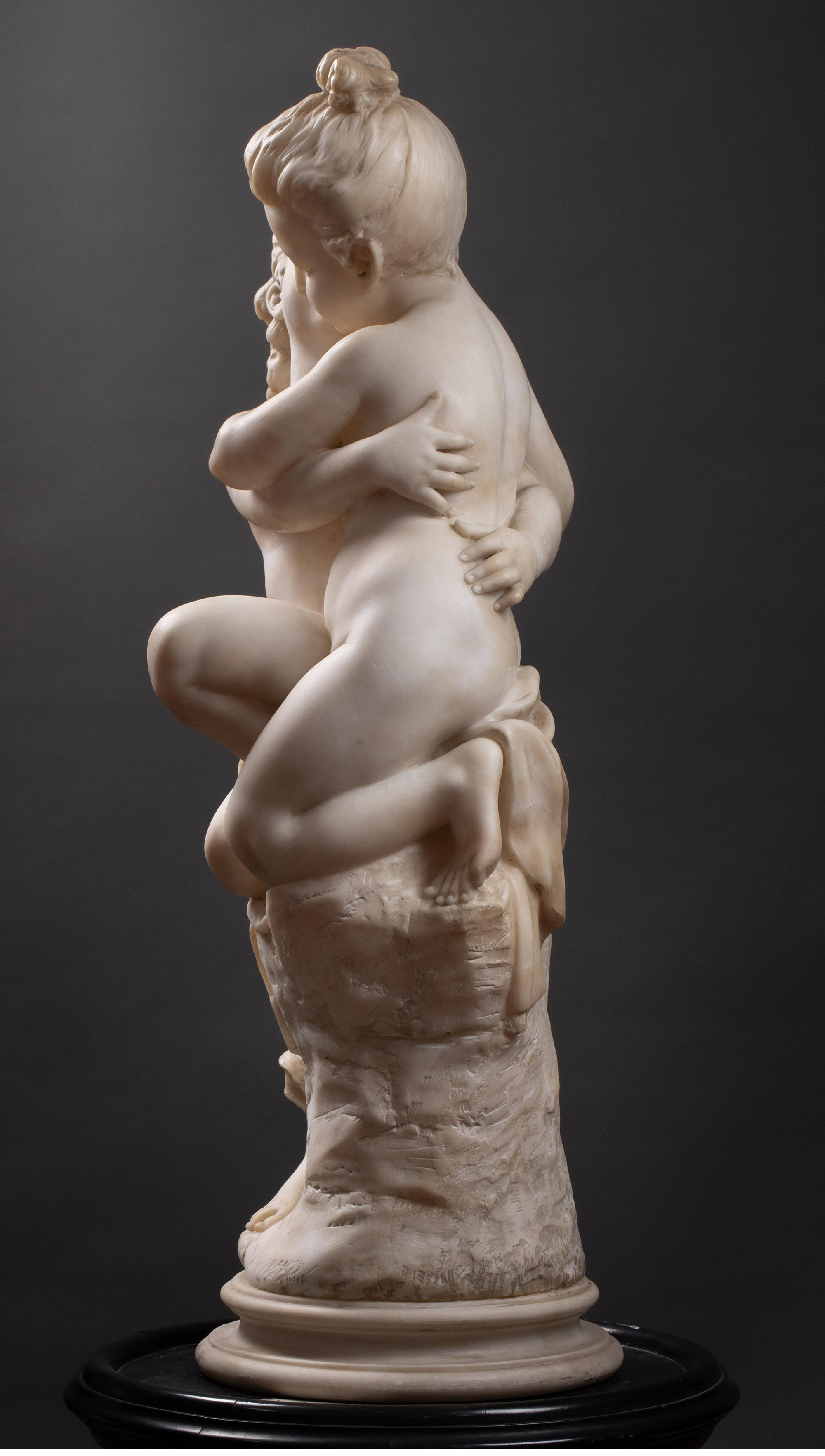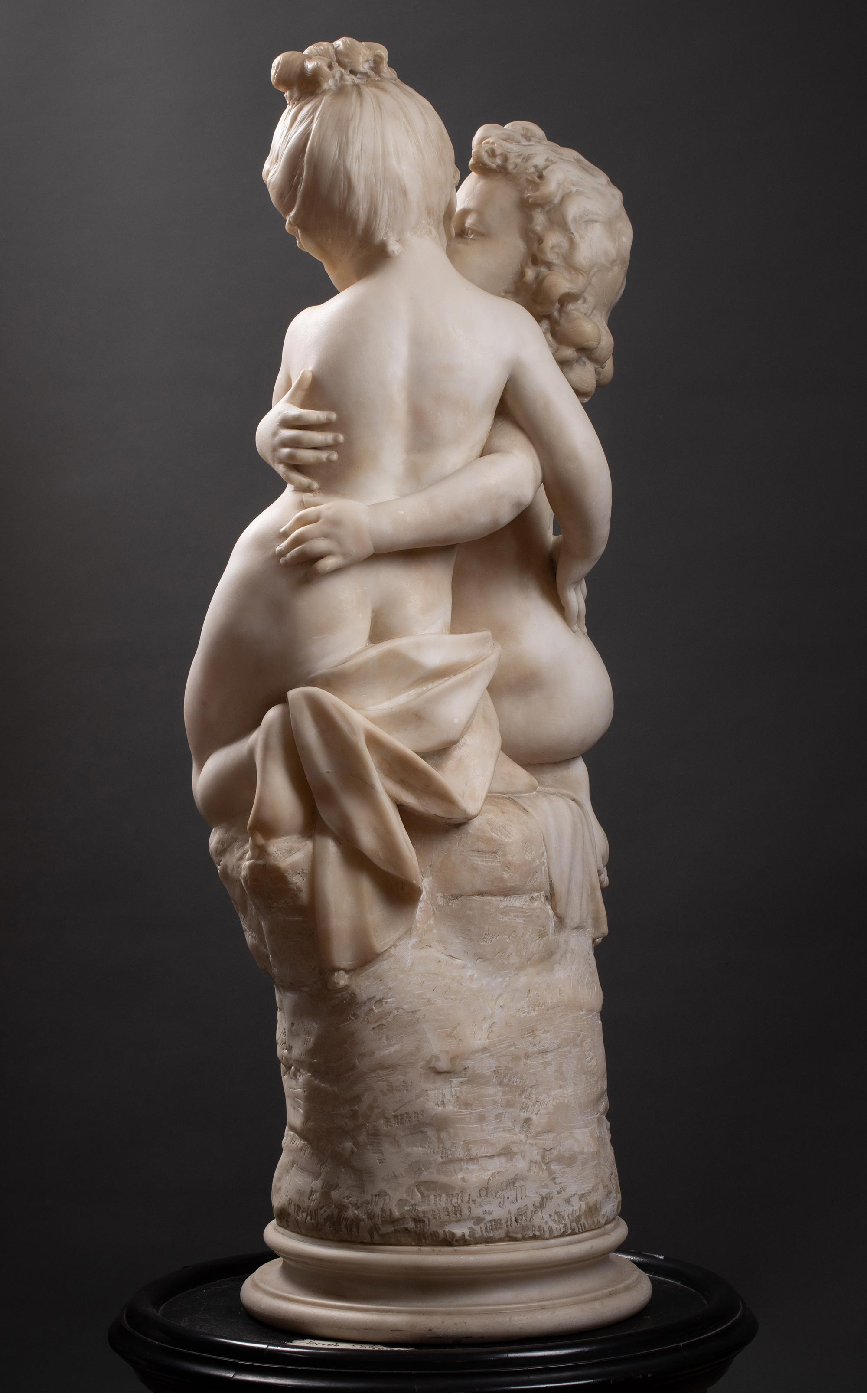 19世纪法国雕塑名家AUG MOREAU签名出品大理石人物雕塑《幼年丘比特与普赛克》