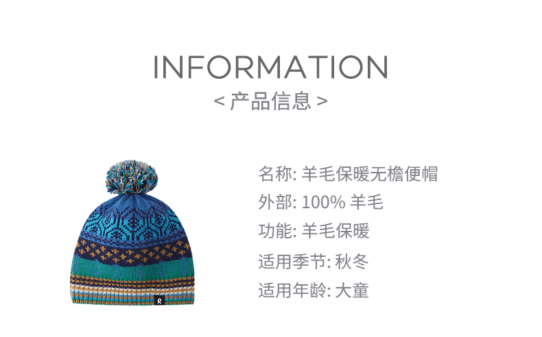 reima男女儿童大童帽子秋冬新款洋气可爱时尚羊毛保暖针织帽
