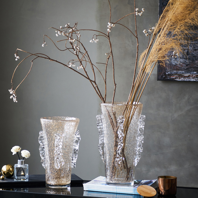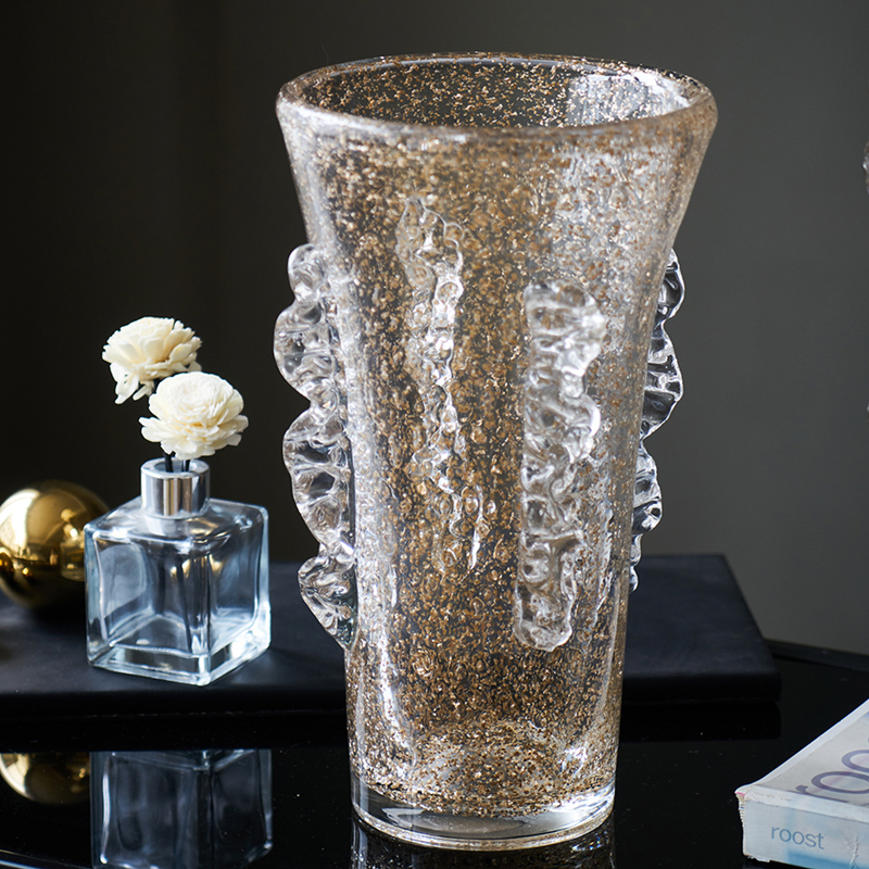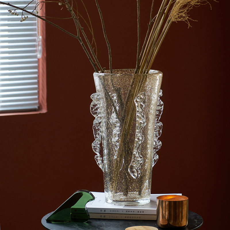 碧轩轻奢手工厚重缠丝金粉世家直筒琉璃花瓶简约桌面客厅样板房瓶