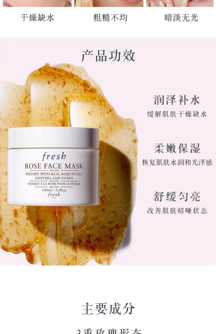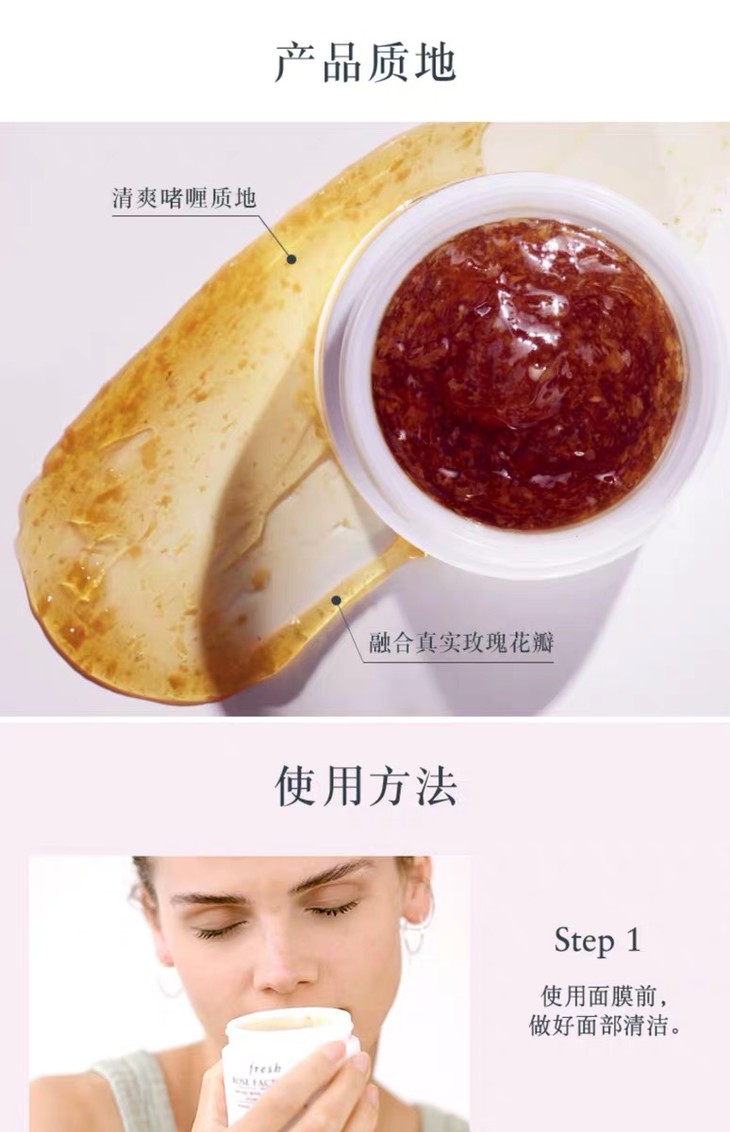 1、产品名称:Fresh馥蕾诗玫瑰面膜
