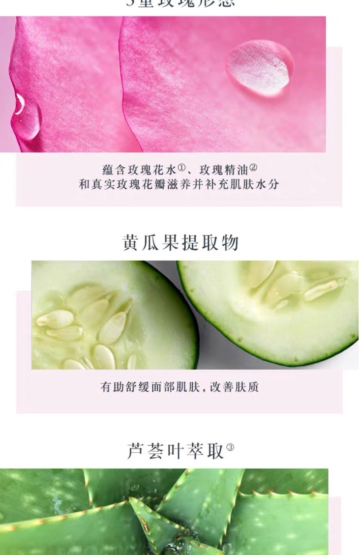 3、功效:补水面膜中的战斗机!舒缓效果一级赞!含有玫瑰花瓣成分用后皮肤水润饱满味道也是浓浓的玫瑰香,相当好闻每次敷10-15分钟洗掉就可以~