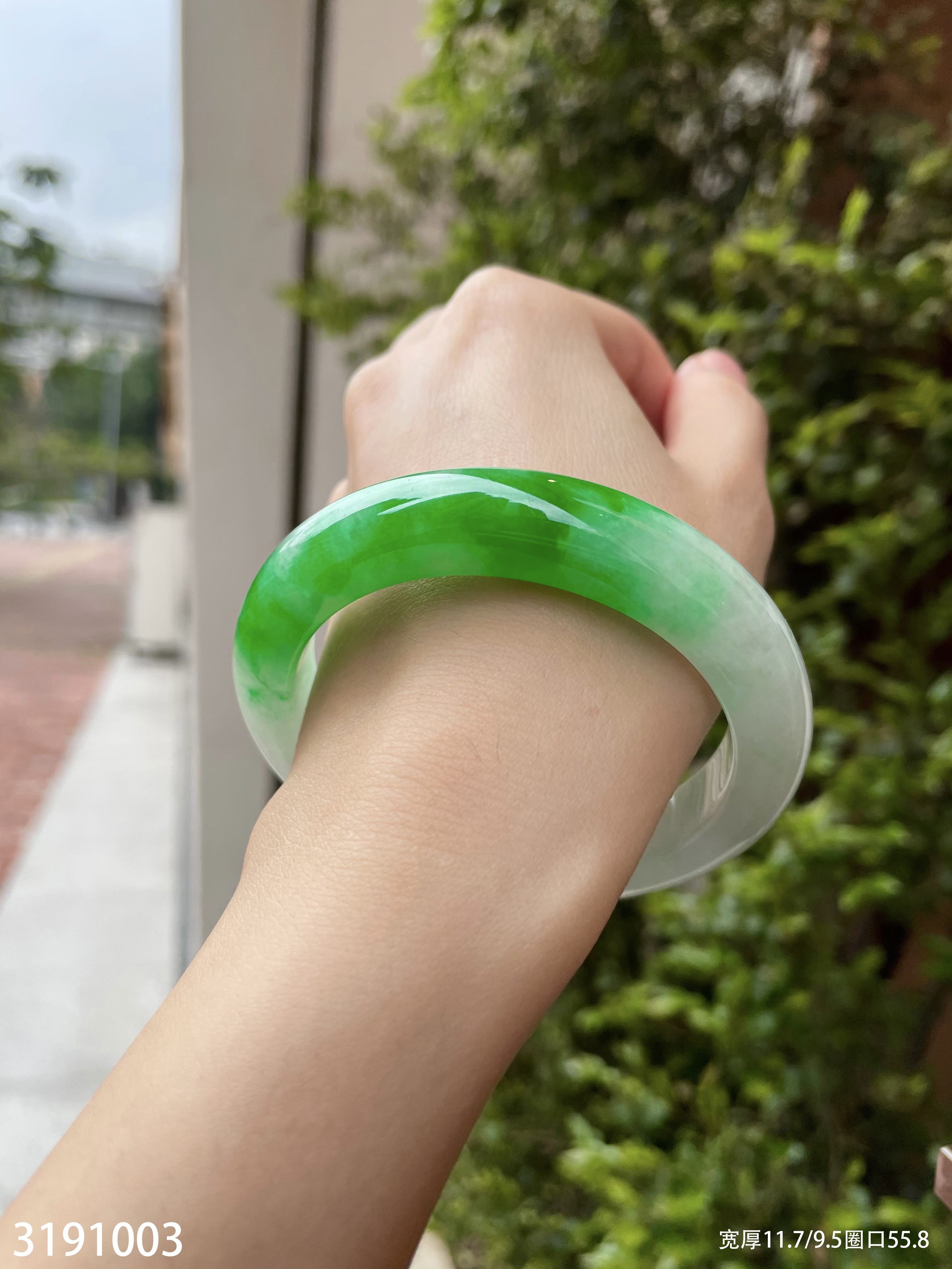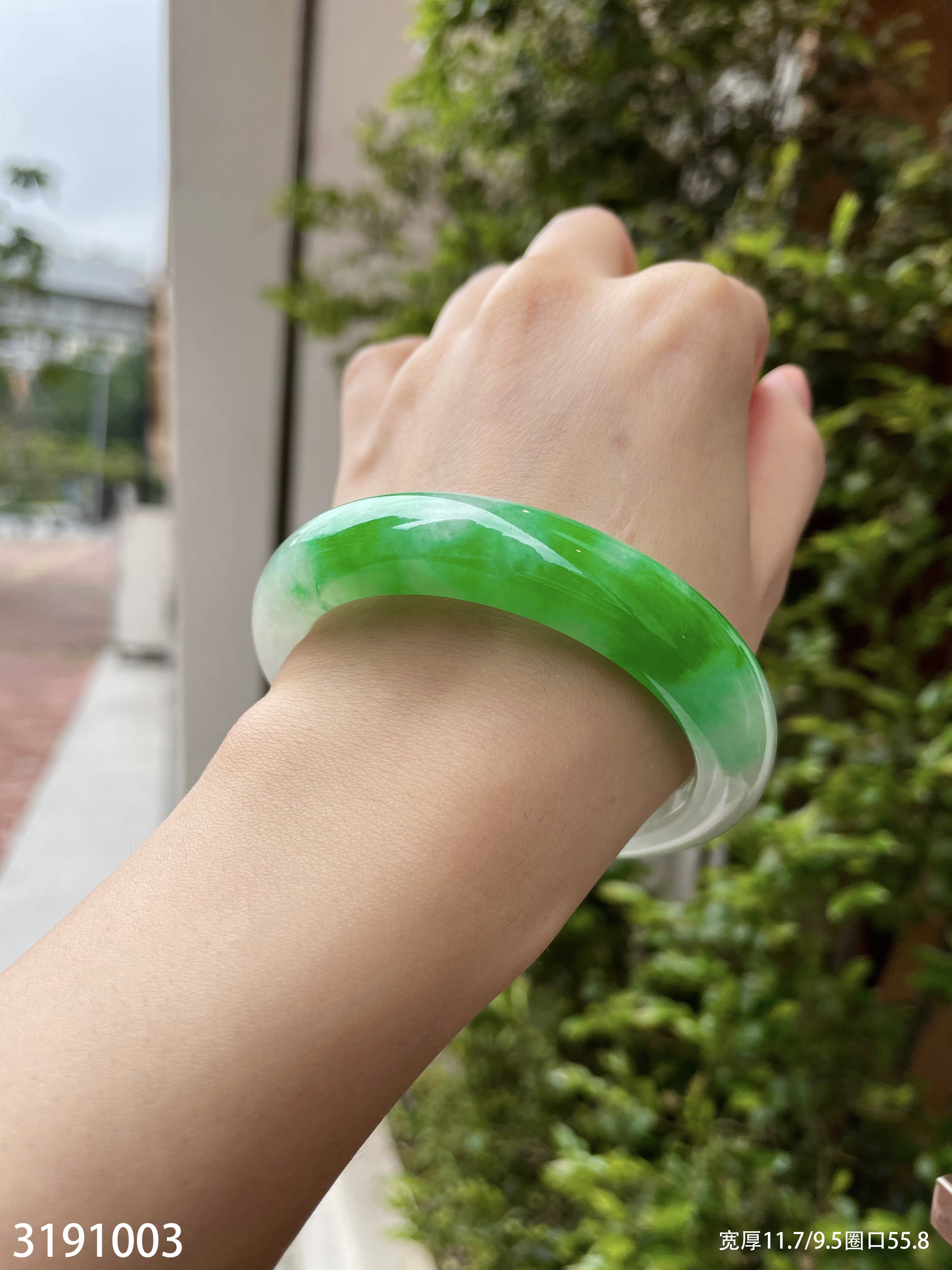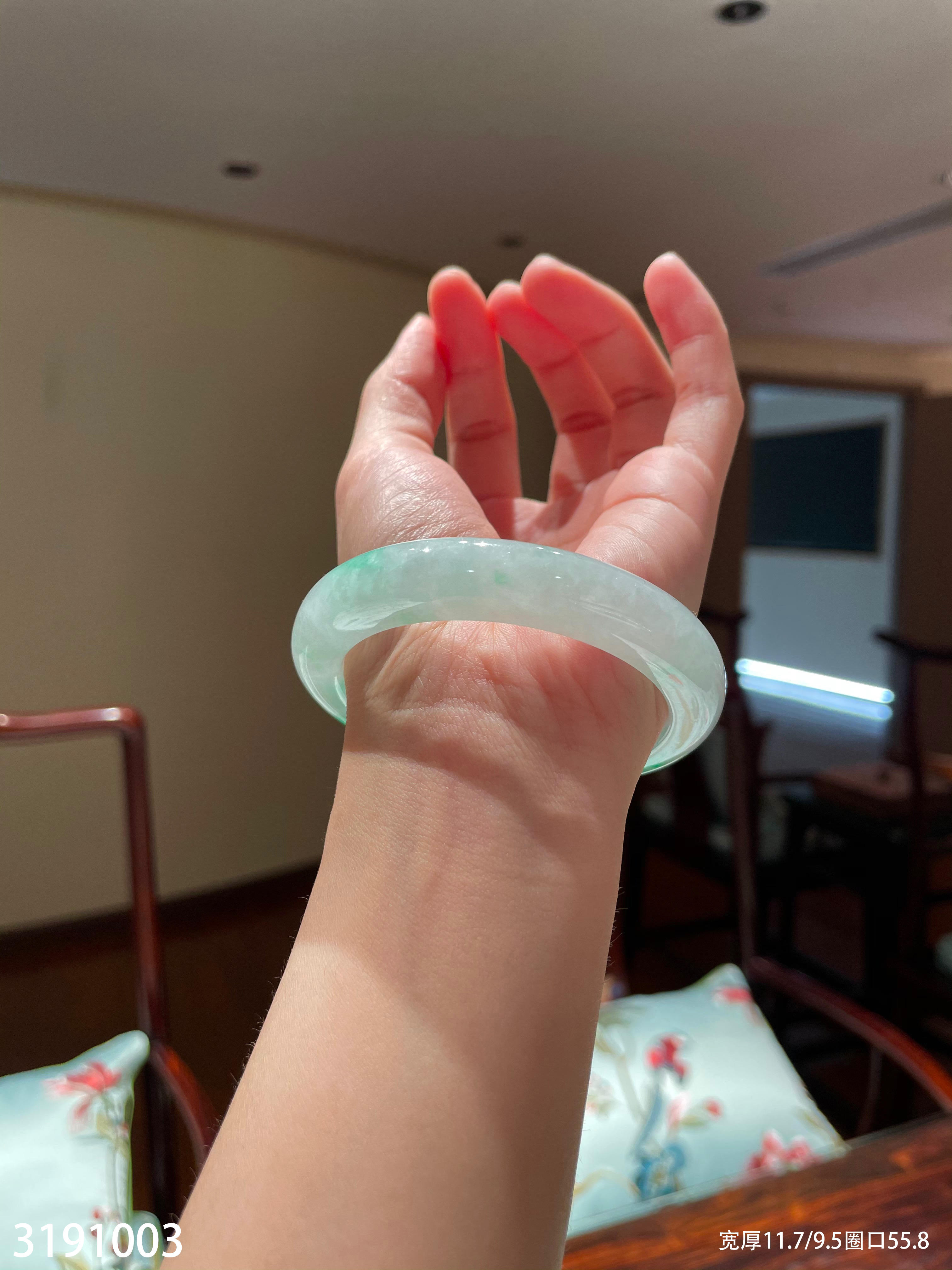 冰糯飘翠手镯【3191003】圈口55.8~具体价格微信咨询