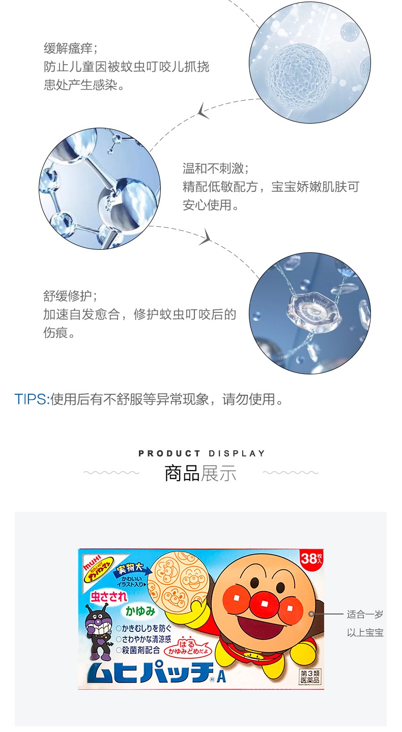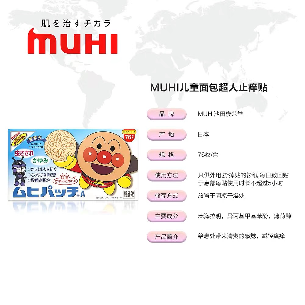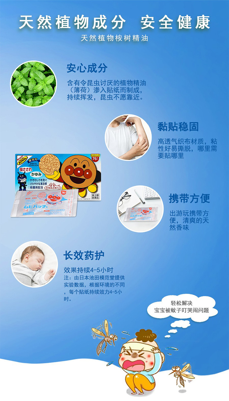 日本MUHI池田模范堂 面包超人宝宝驱蚊贴 止痒贴 成人小孩防蚊虫户外76枚