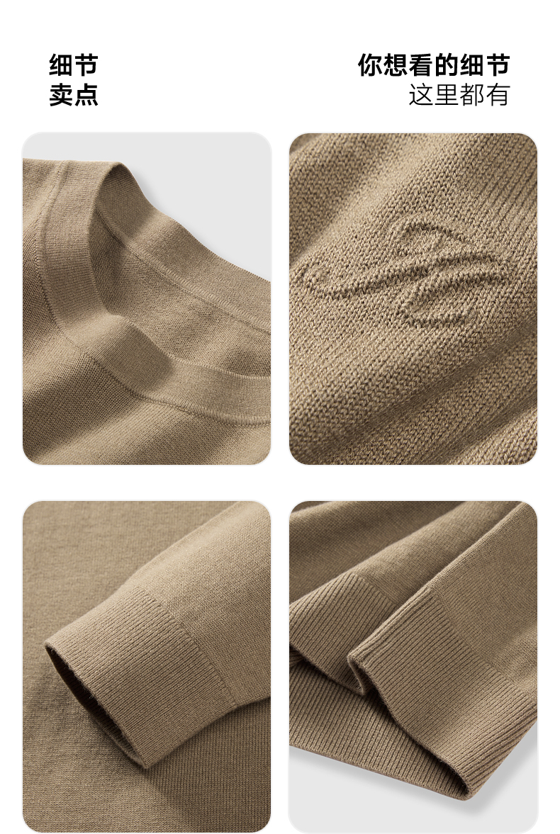 GXG男装 卡其色低领毛衫打底衫针织衫 24年冬G24X204022