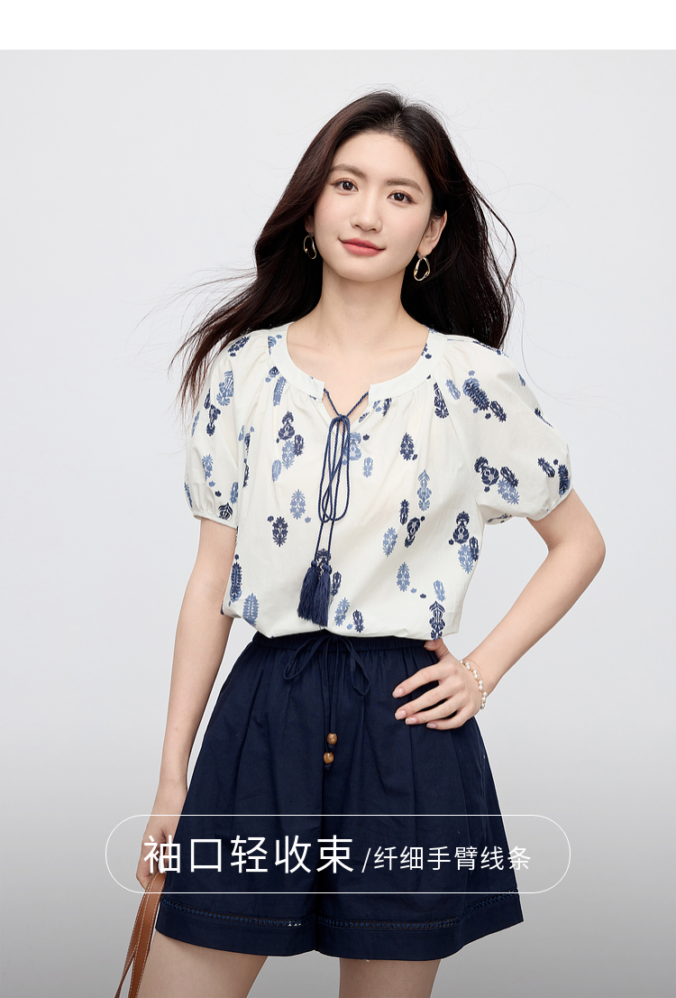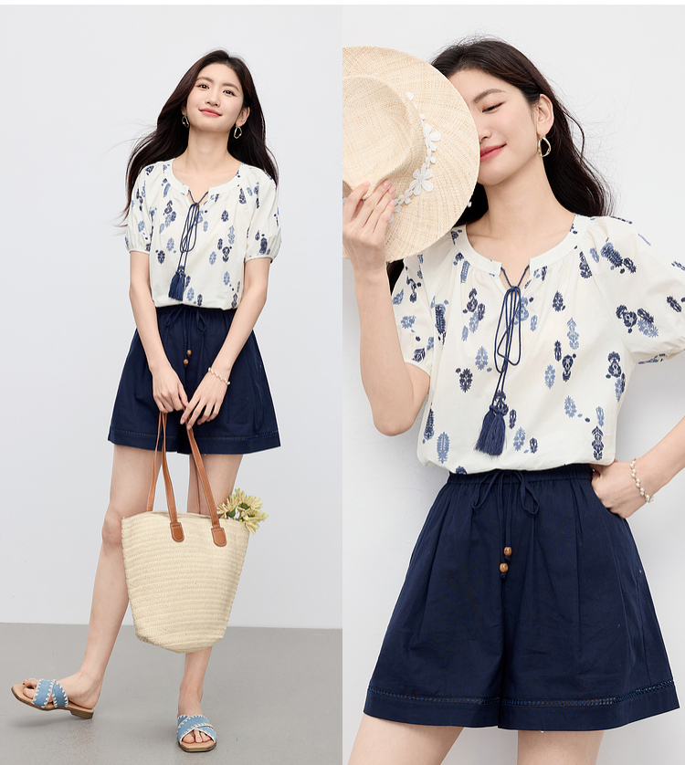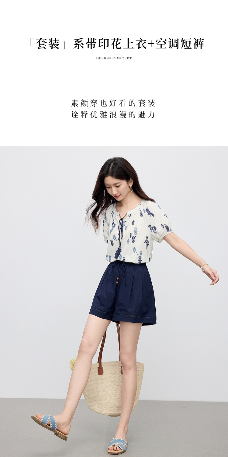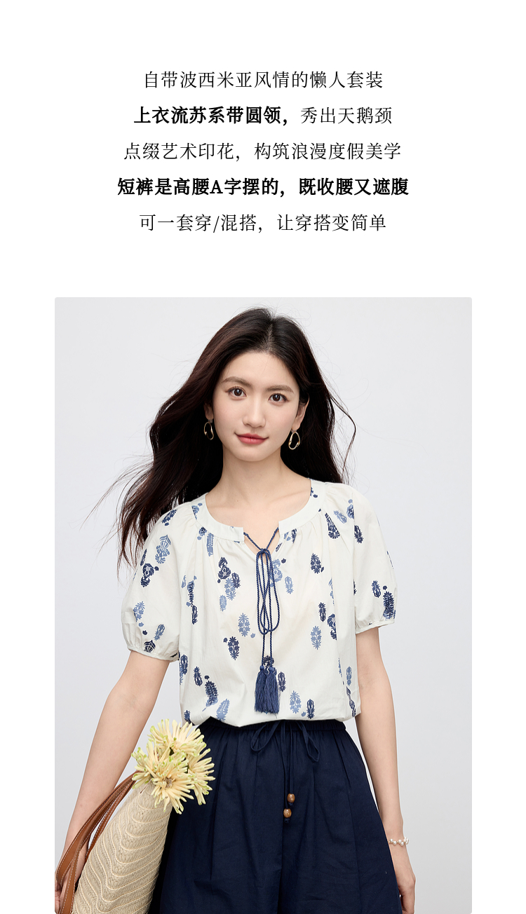 【周末秒杀】熙世界波西米亚风套装女夏季2025新款复古印花衬衫a字短裤两件套