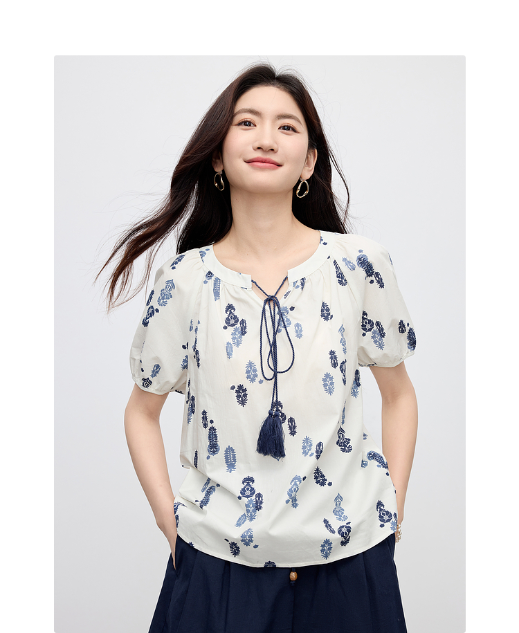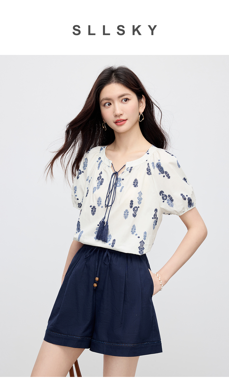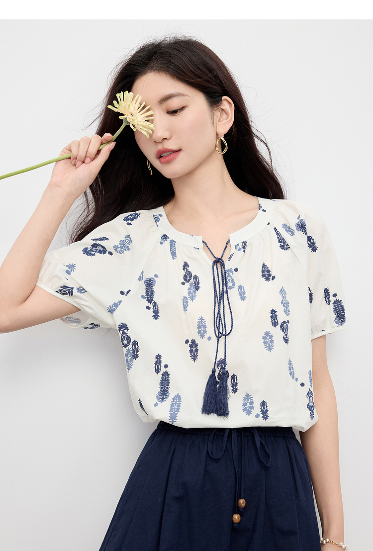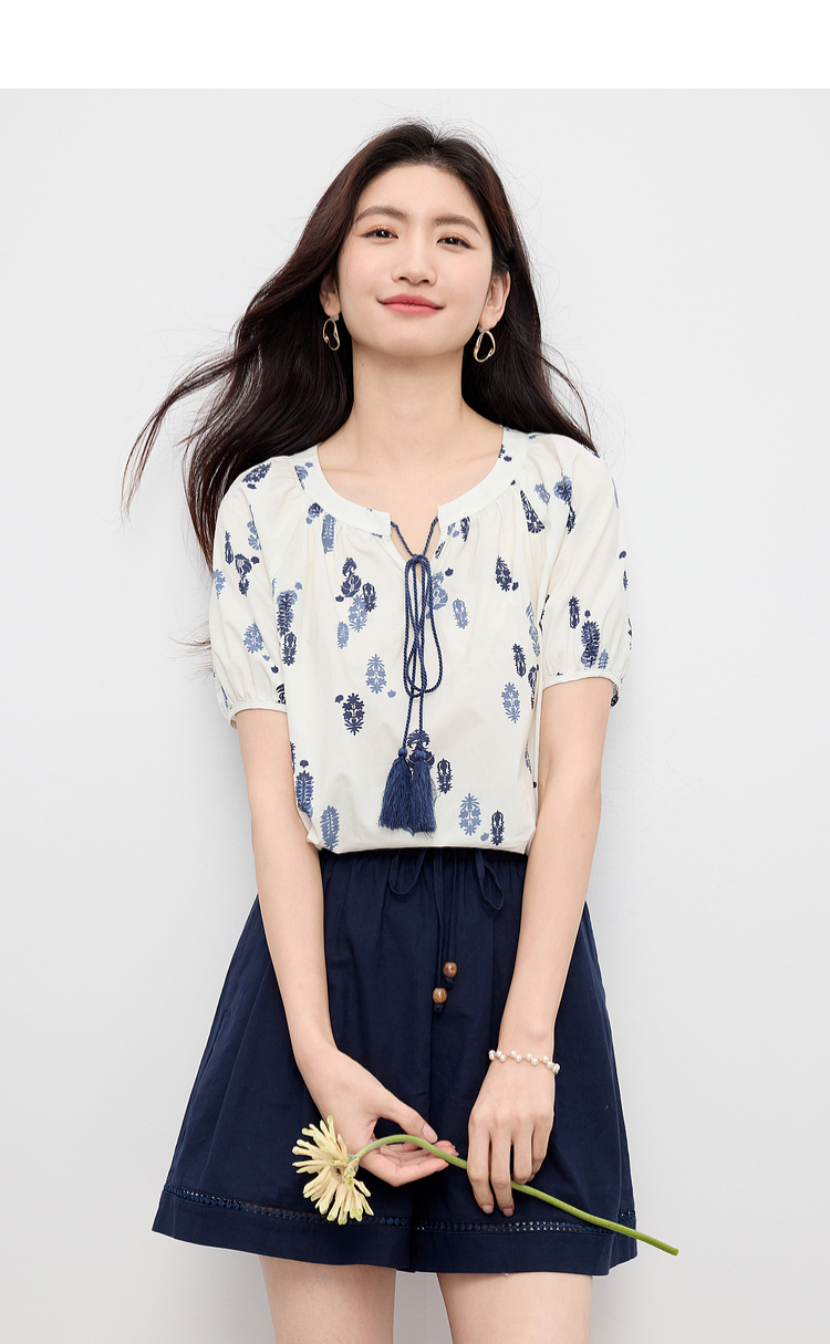 【周末秒杀】熙世界波西米亚风套装女夏季2025新款复古印花衬衫a字短裤两件套