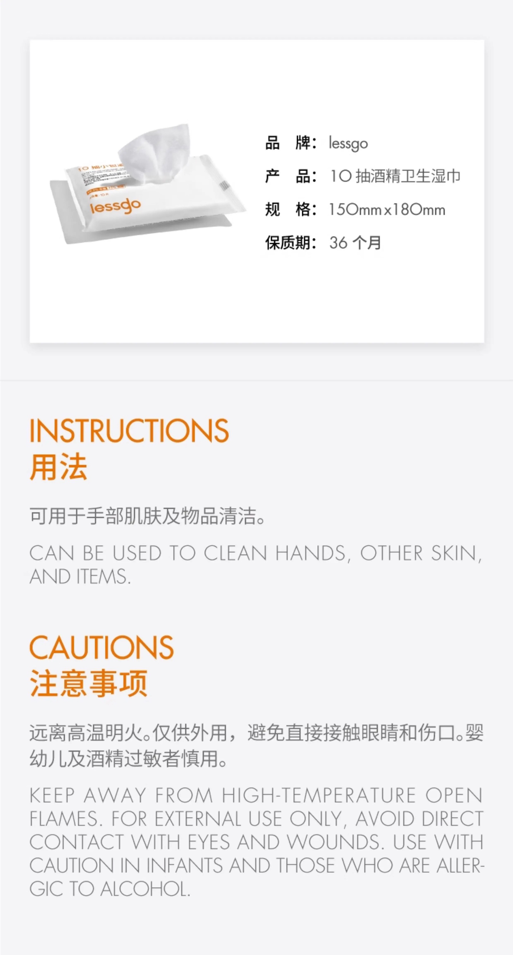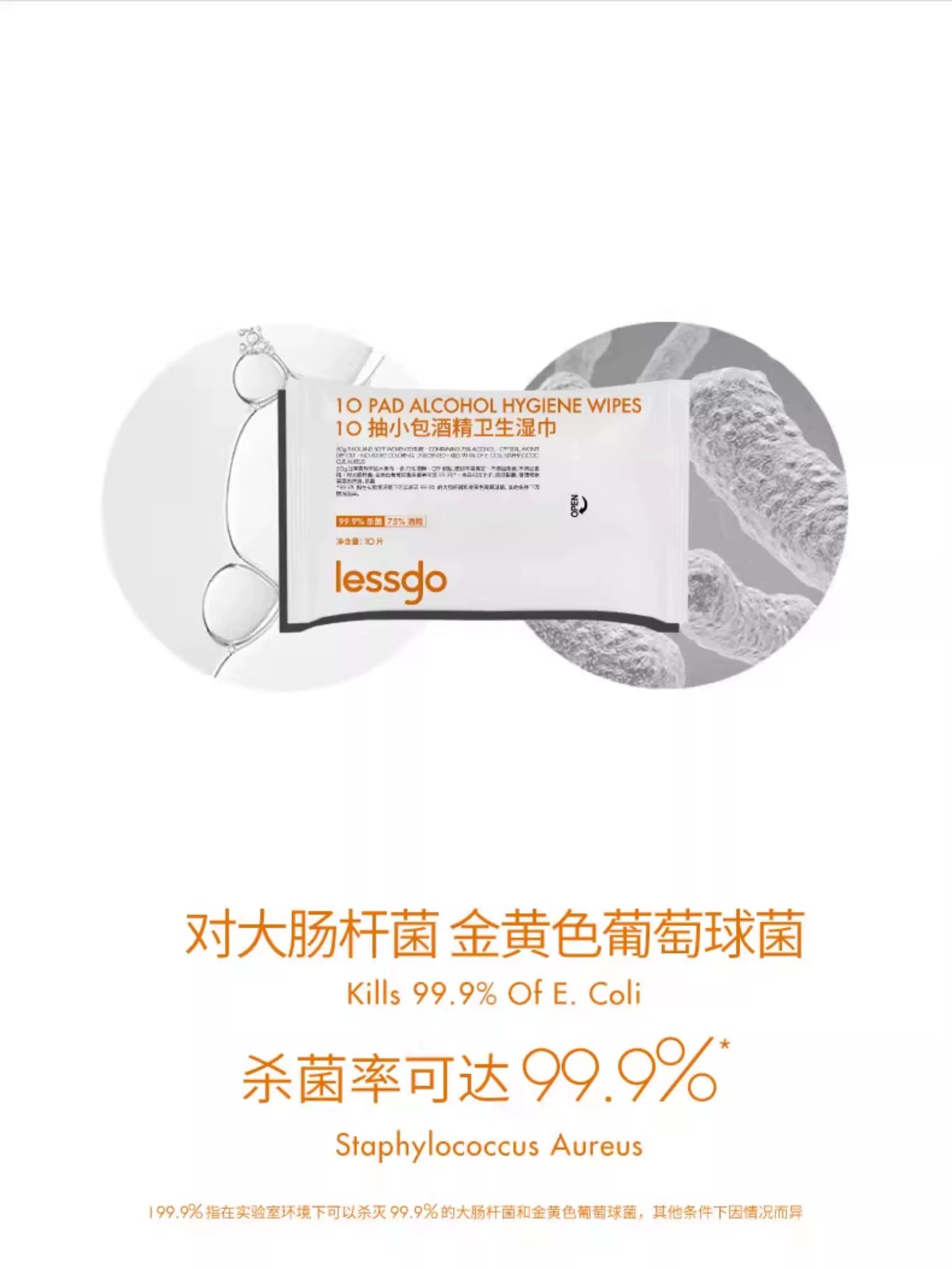 lessgo利事多酒精卫生湿巾10抽 家用消毒杀菌
