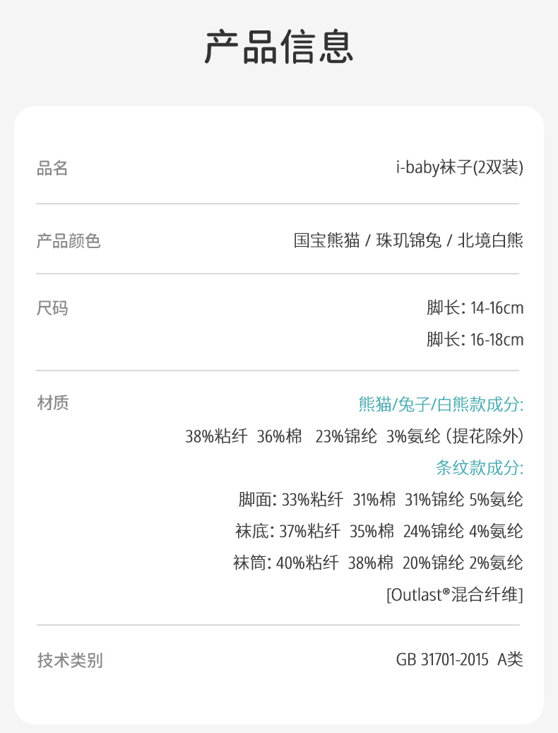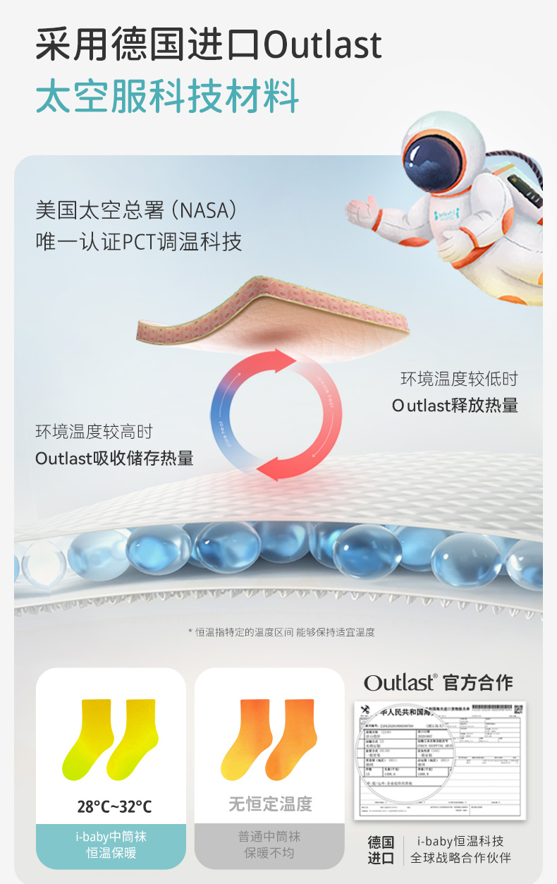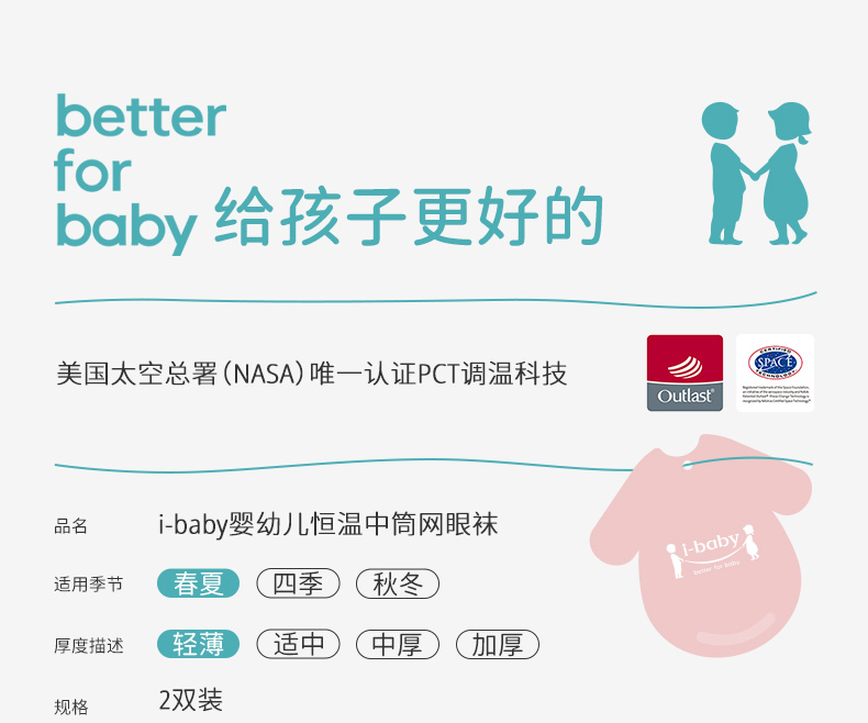 i-baby/英伦宝贝×Outlast儿童恒温中筒袜(2双装)