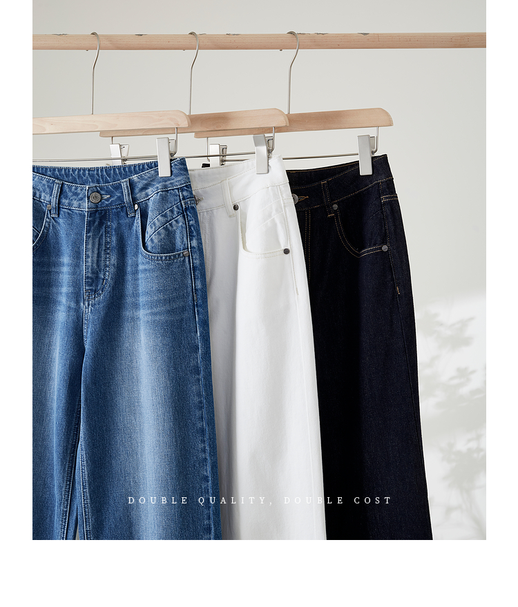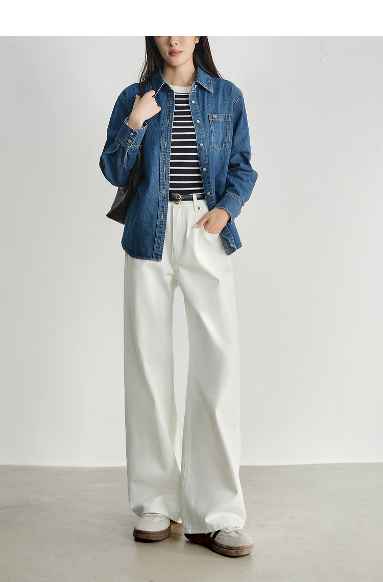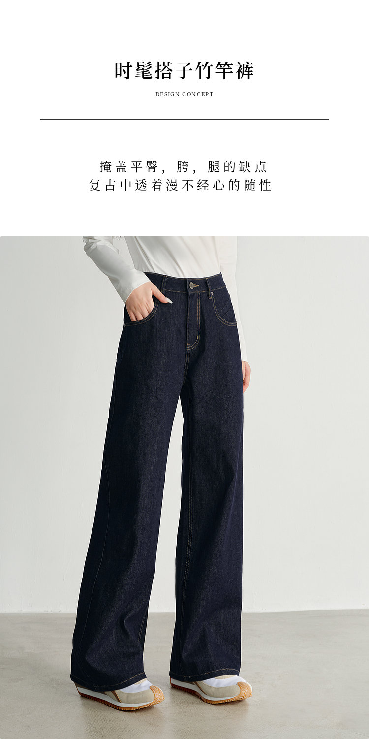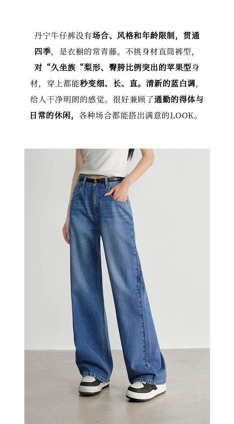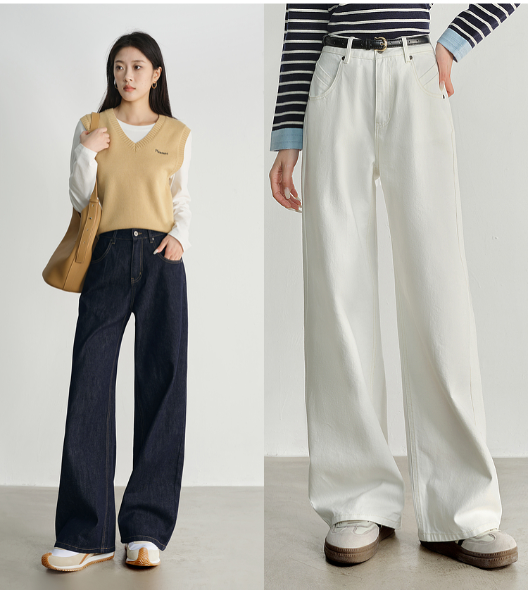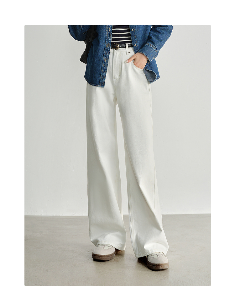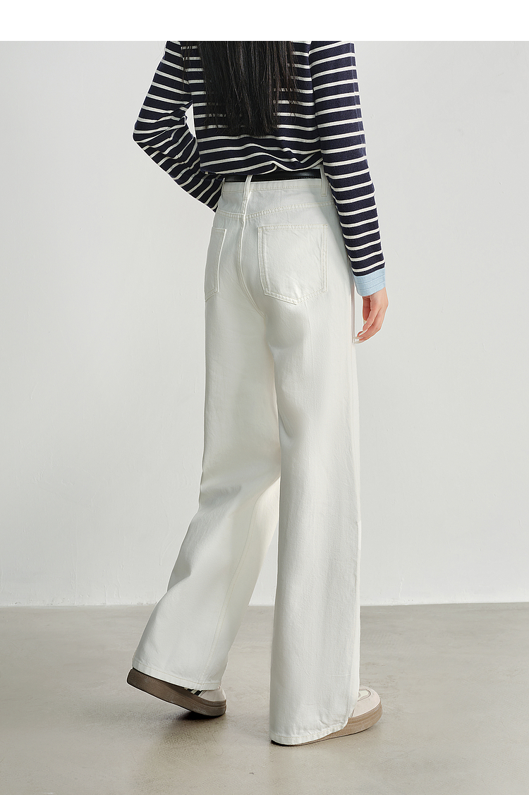 【专属特价】熙世界白色牛仔裤女直筒宽松2025年春秋新款高腰显高窄版阔腿裤子